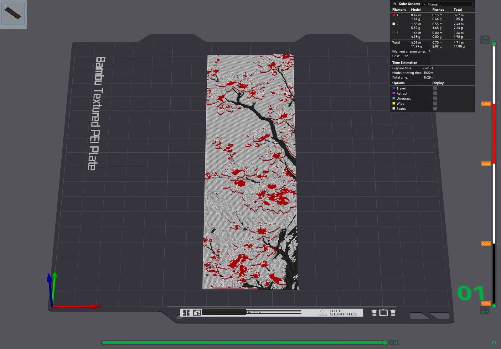 Hướng dẫn thay nhựa: Bắt đầu bằng màu Đen Đến lớp #7 (0.64mm) đổi sang màu Trắng Đến lớp #15 (1.28mm) đổi sang màu Đỏ Đến lớp #21 (1.76mm) đổi sang màu Trắng cho đến hết.