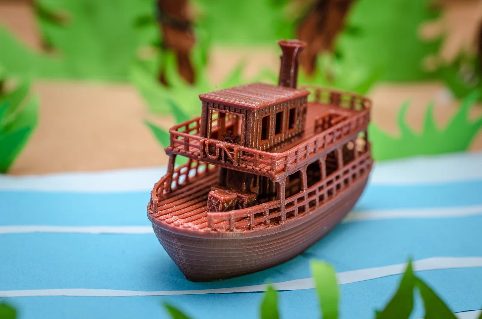 Khám phá thế giới cùng Jun, Nữ hoàng Rừng xanh. Đây là một mẫu thuyền độc đáo cho những chuyến phiêu lưu tưởng tượng. Dù không phải là mẫu chuẩn benchy, bạn vẫn có thể dùng Jun để kiểm tra chất lượng in ấn của máy 3D.