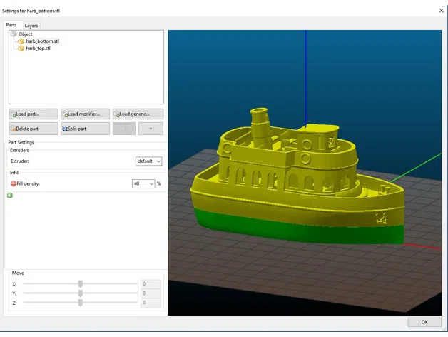 Để HARB nổi trên mặt nước tốt hơn, mình khuyên các bạn nên in phần đáy với mật độ infill 40%.