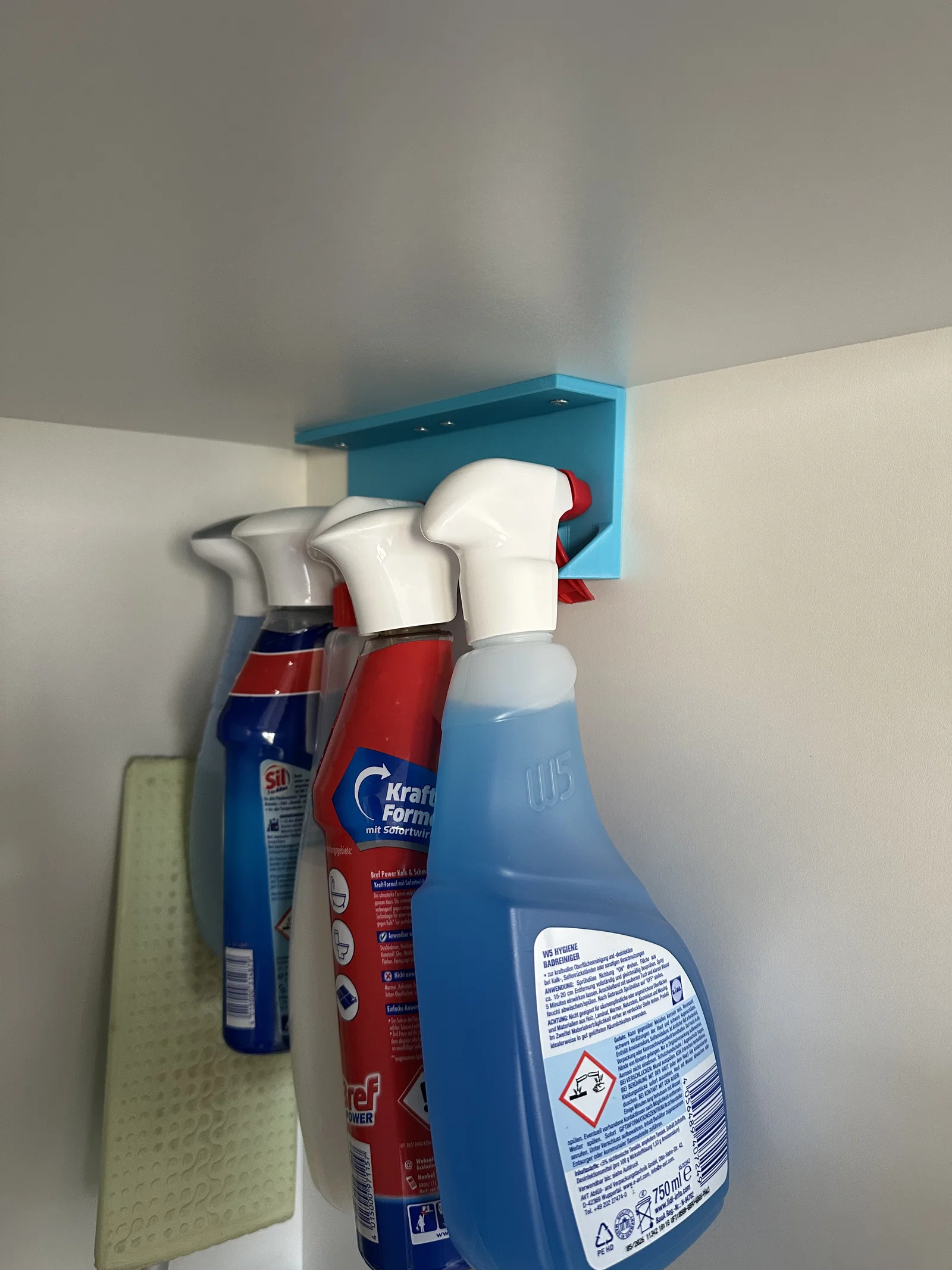 Giá treo bình xịt được thiết kế để gắn bên trong tủ bếp, dùng để bắt vít lên tường hoặc trần tủ. Cả hai mẫu thiết kế đều được đính kèm trong file, bạn có thể chọn in phiên bản phù hợp với nhu cầu sử dụng của mình.