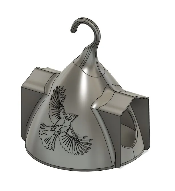 một cái máng ăn cho những người bạn chim của chúng ta, cho mùa đông này... Được thiết kế trên fusion 360, với một hình nổi cho hình vẽ của con chim. Tôi đã thử sử dụng chiếu trên đường cong nhưng không thể đùn chiếu, vì vậy tôi đã tìm ra một giải pháp khác. Việc in đã kéo dài 24 giờ, với, như bạn sẽ thấy trên hình ảnh, một vấn đề về việc đùn. Các giá đỡ chỉ cần thiết cho cái móc, tôi đã đặt chúng thủ công trên simplify 3d. Tôi đã đặt hai tệp stl, một cái là cái tôi đã sử dụng để in, cái lớn hơn, cái kia là một phiên bản đơn giản hơn trong 3d builder.