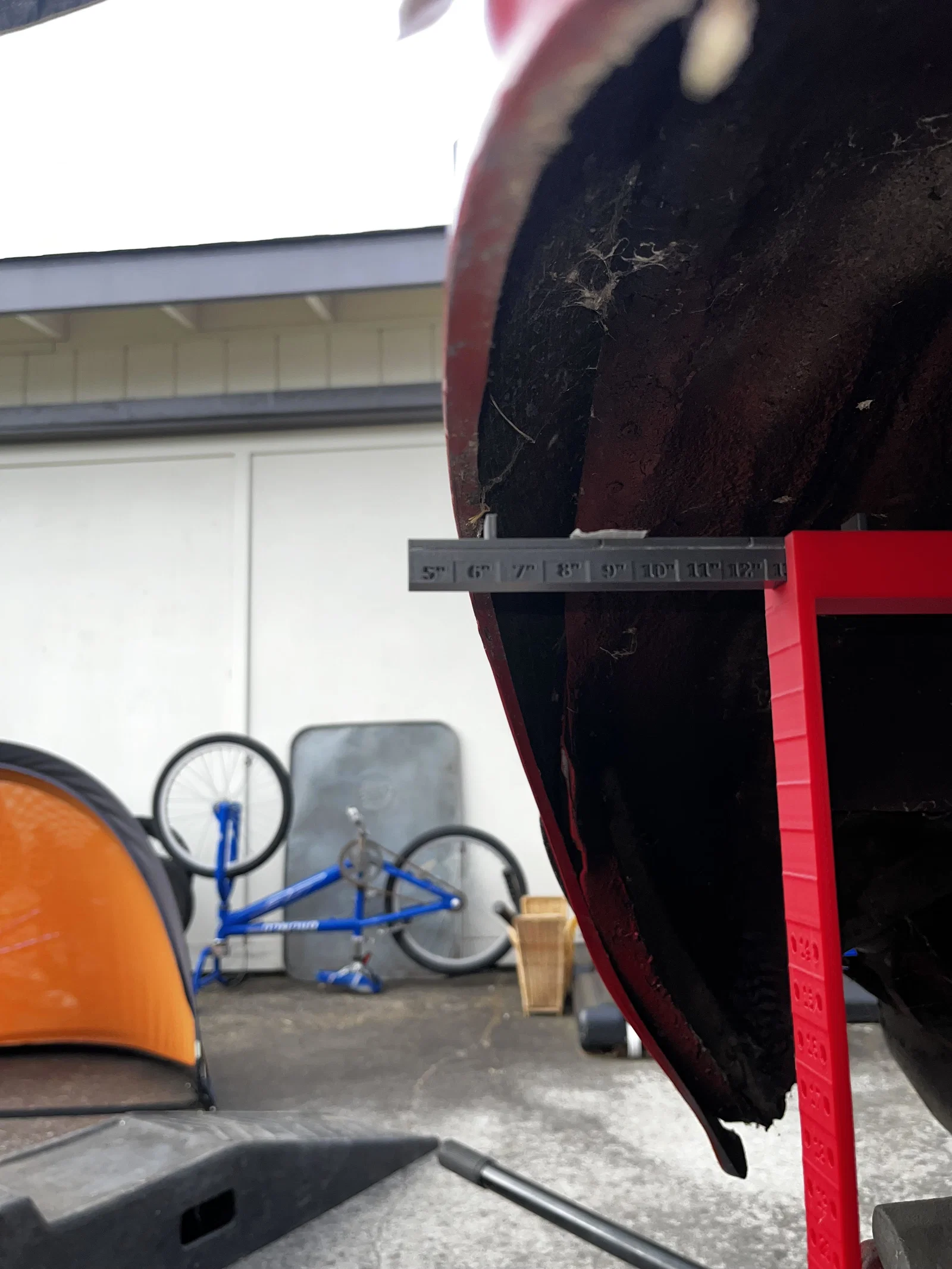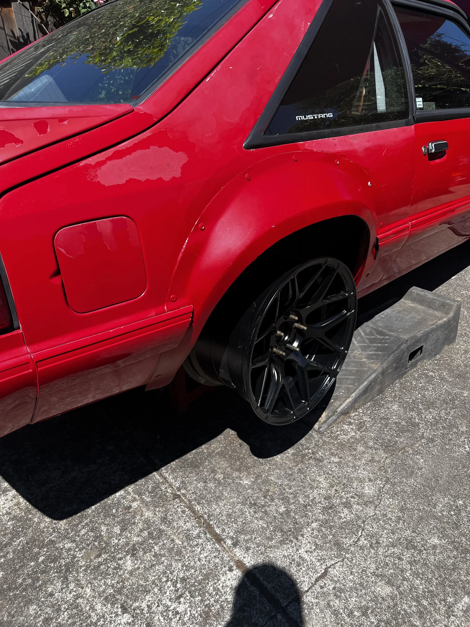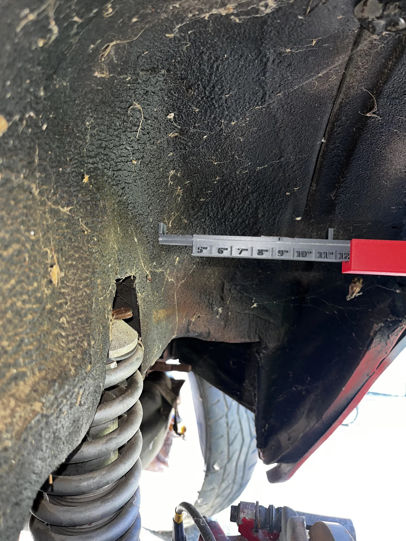 Dụng cụ này được mình dùng trên chiếc Foxbody Mustang để tính toán độ offset cần thiết cho mâm và lốp sau khi đã lắp thêm vè chắn bùn (fender flares). Mình đã đo thử với mâm 18x10.5 inch và lốp 315/30 (kích thước 25.5x12.5 inch). Dụng cụ này có khả năng kiểm tra số đo offset ở cả phía trong và phía ngoài để xem có bị cạ hay va chạm không.