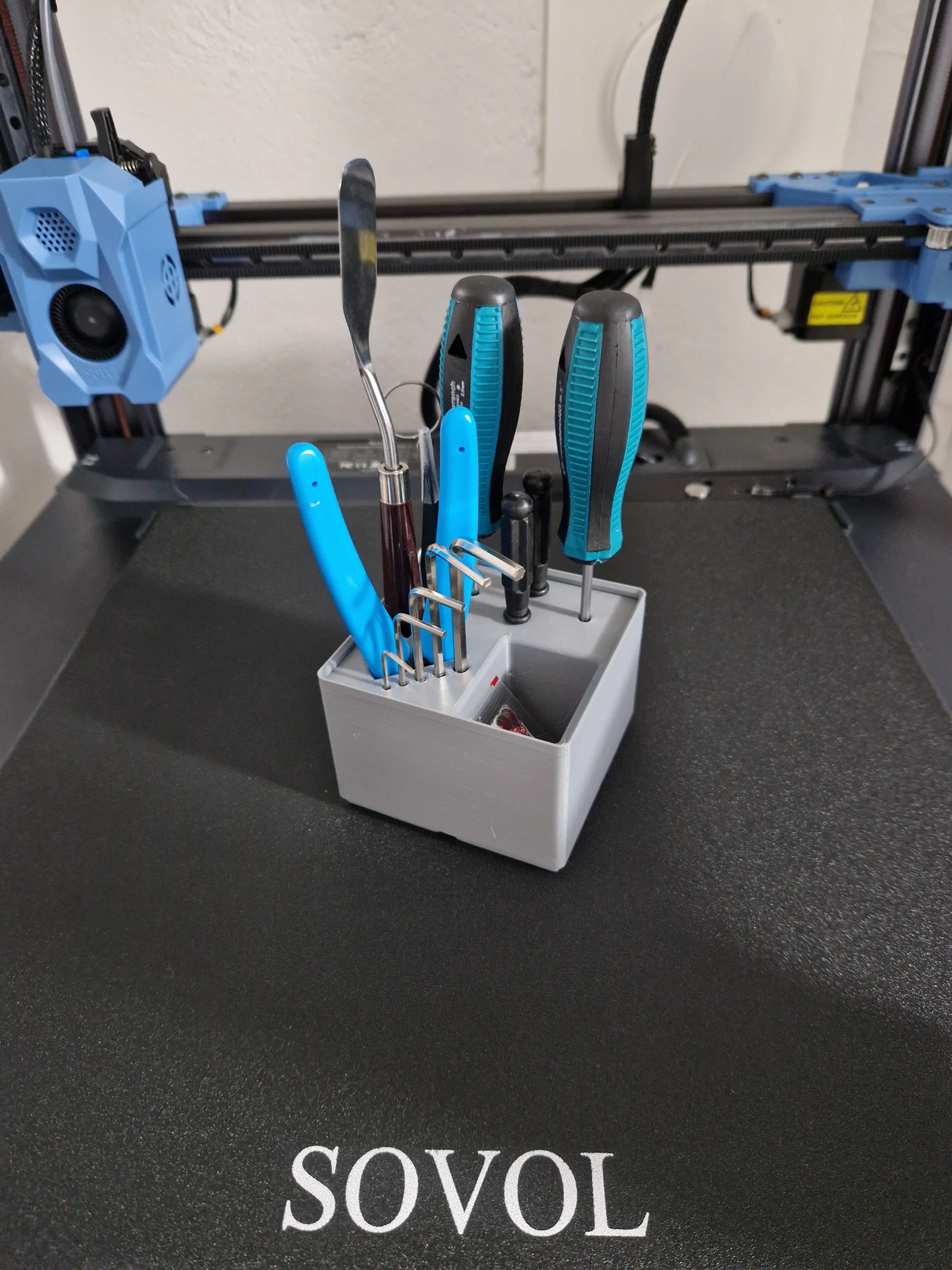 Giá đỡ dụng cụ tiện lợi cho Sovol SV08 với không gian lưu trữ đầu in và linh kiện nhỏ, tương thích với hệ Gridfinity 4x4x8. Thiết kế linh hoạt, dễ in, hỗ trợ sắp xếp bàn làm việc gọn gàng và ngăn nắp hơn.