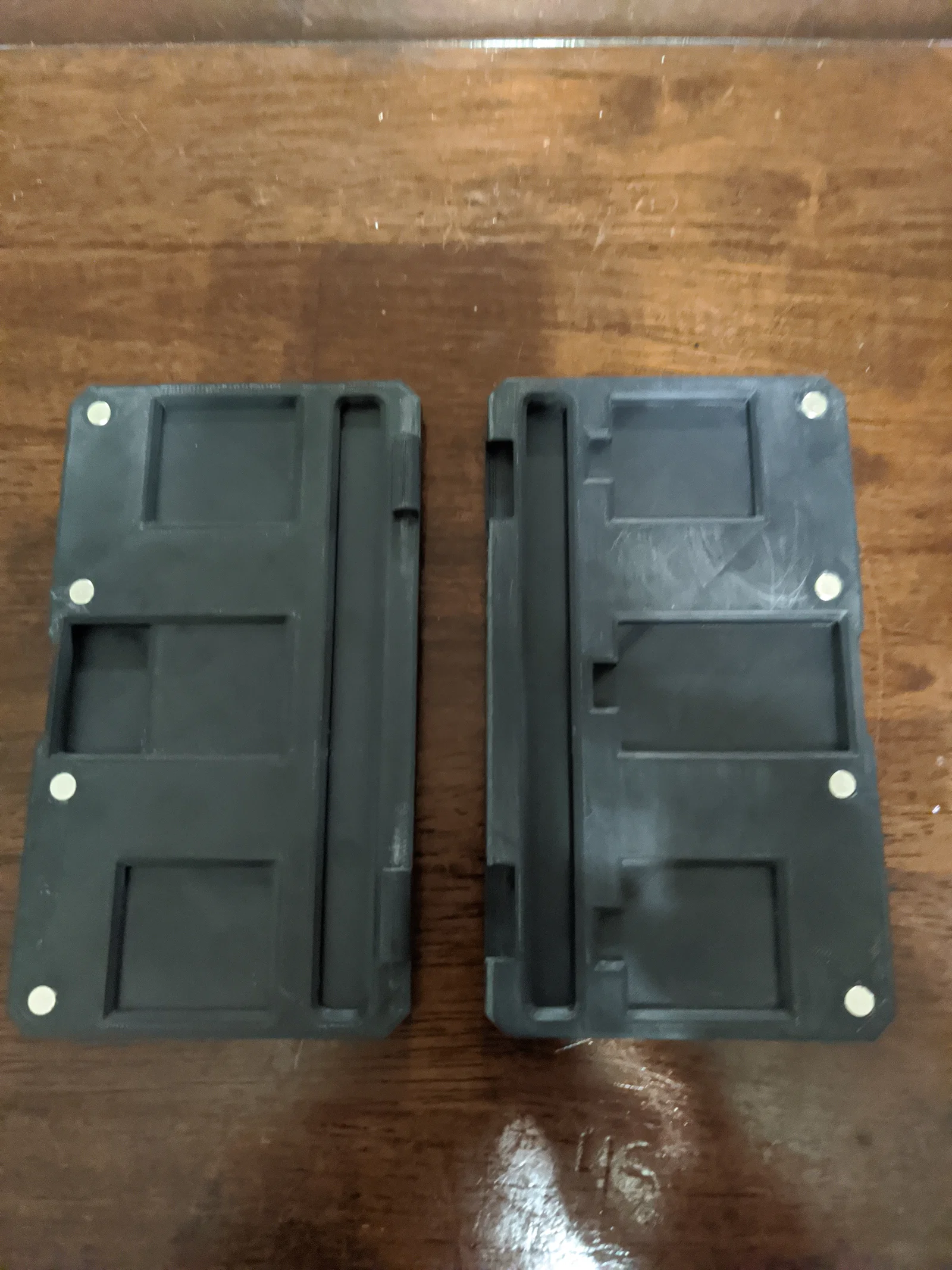 Sản phẩm gồm hai phần và sử dụng đoạn dây nhựa 1.75mm làm trục bản lề. Ngoài ra còn có phiên bản hỗ trợ gắn nam châm 6mm × 3mm (4 vị trí, tổng cộng 8 viên) để đóng mở chắc chắn hơn.