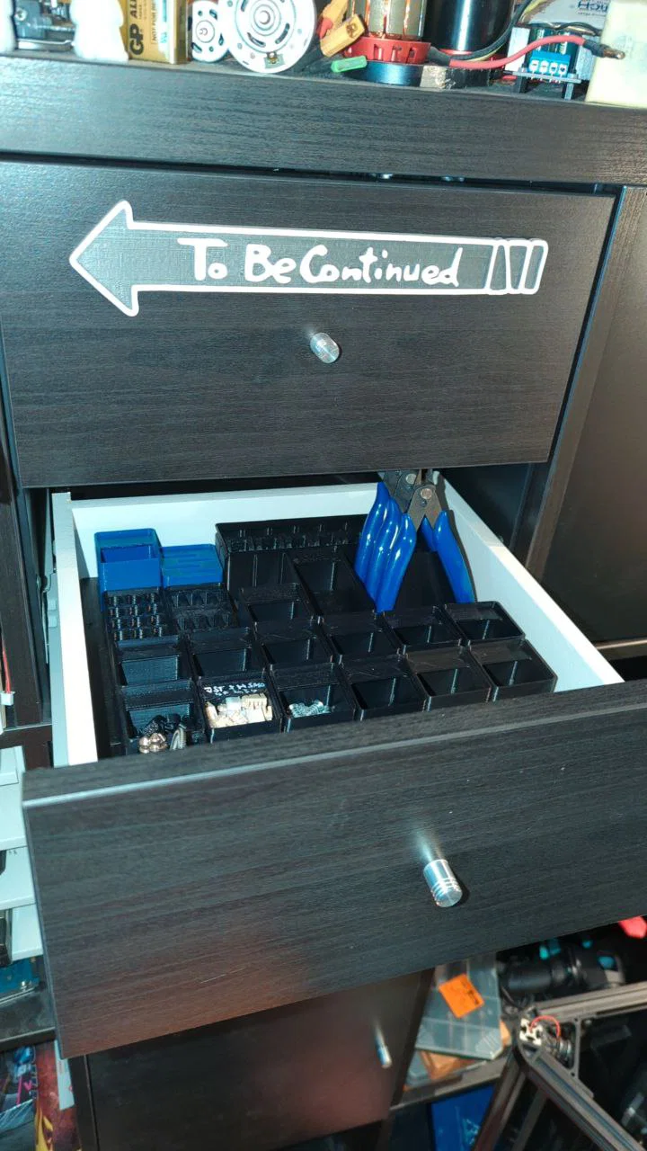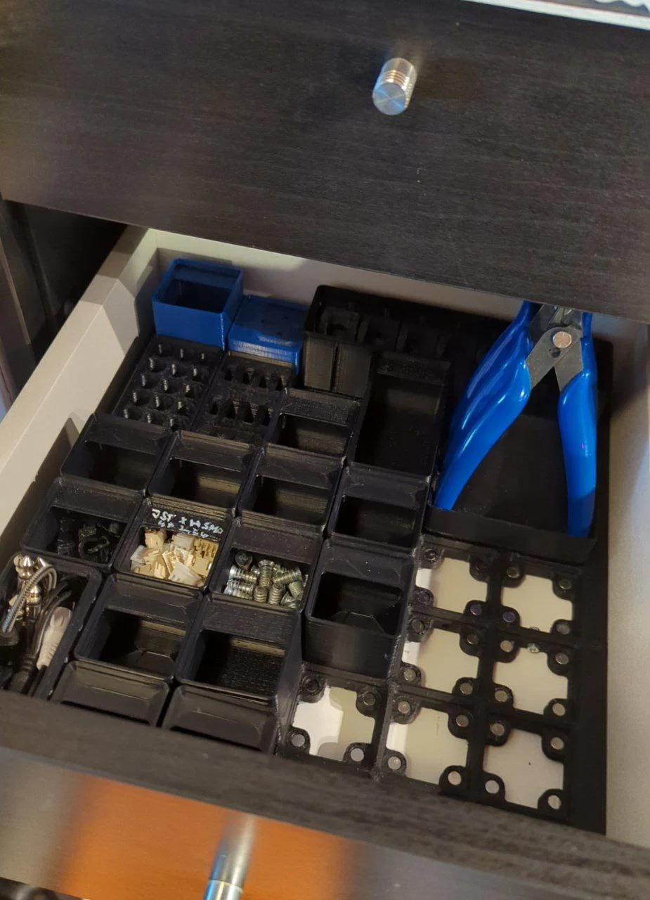 Gridfinity thì hay thiệt đó, nhưng mà có bao giờ mấy bạn nếm trải cái cảm giác phải đi lượm hàng trăm con ốc vít văng tung tóe chỉ vì lỡ tay mở ngăn kéo hơi nhanh chưa? Đúng rồi đó, cảm giác đó tệ lắm. Mẫu này mình làm ra để giải quyết vấn đề đó, nó to, chắc chắn và siêu bền. Ok, có thể không tới mức "ra trận" đâu, nhưng chắc chắn là nó trụ vững trước mấy lần mình phấn khích mở ngăn kéo quá đà.
