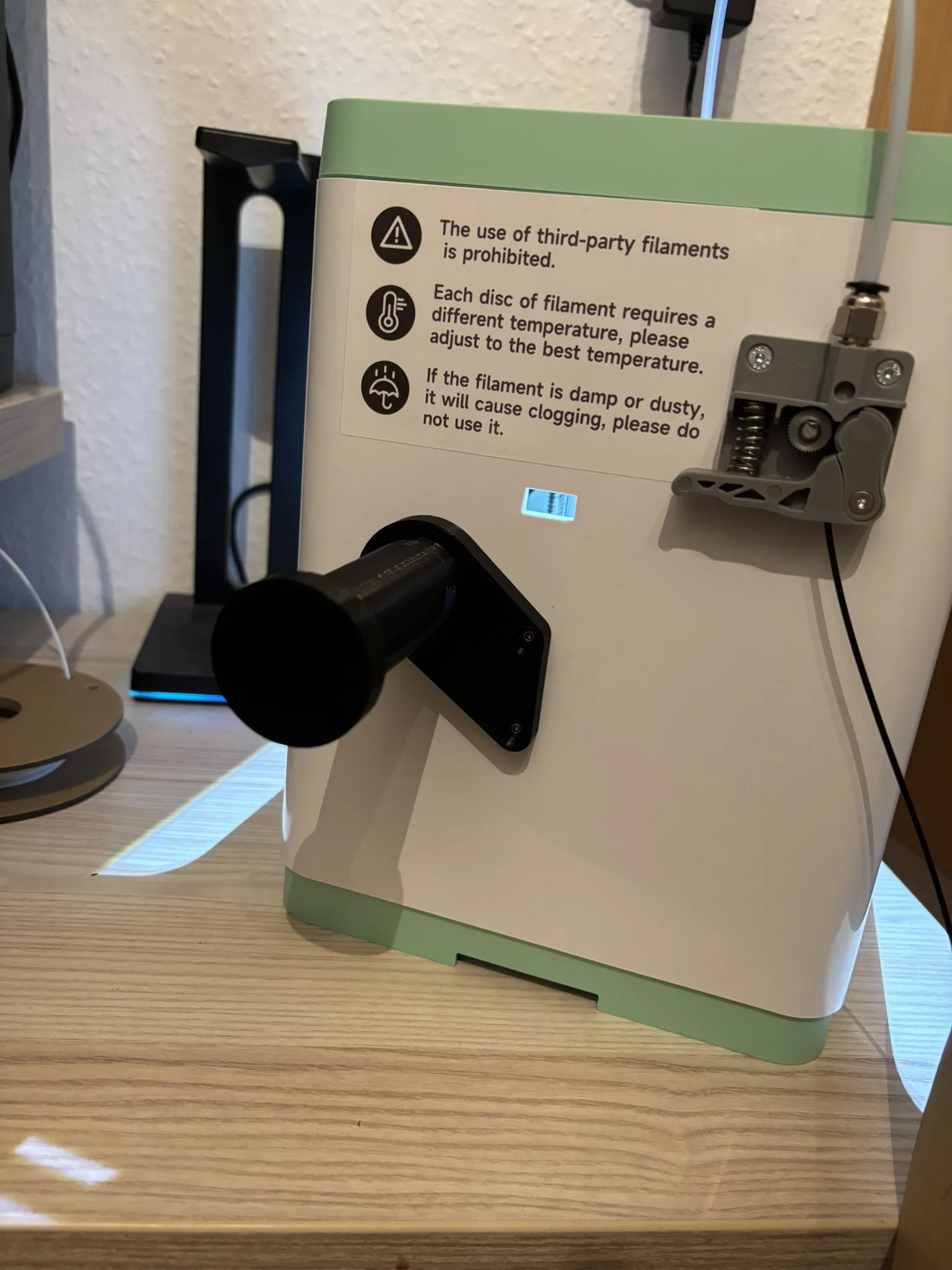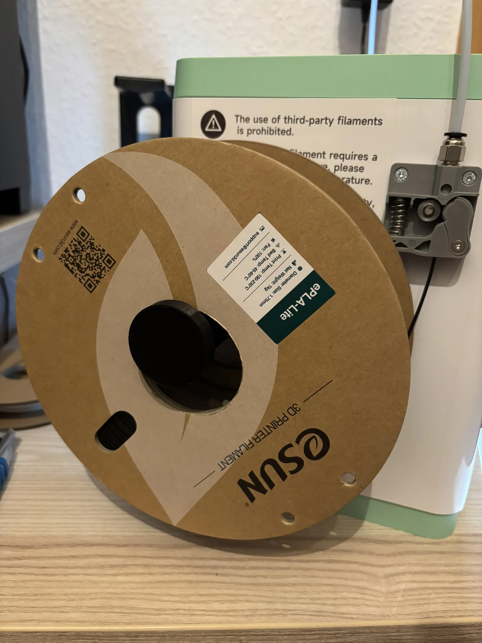 Với giá đỡ sợi nhựa này, bạn có thể sử dụng cuộn nhựa 1kg cho máy in Tina2s của mình. Chỉ cần tháo giá đỡ gốc ra (2 ốc vít M3) và gắn giá đỡ mới này vào là xong. Mình đã tự in nó bằng chính chiếc máy Tina2s này luôn.