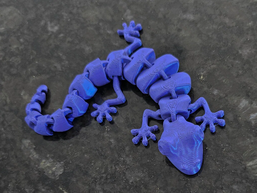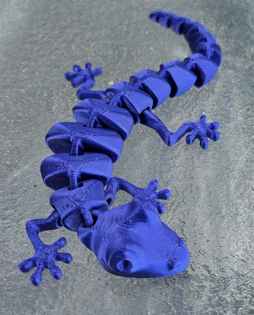 Mô hình gốc có phần mô tả về mục tiêu của tác giả - thực sự đã đạt được kết quả rất tốt! Tuy nhiên, bạn không cần phải làm gì cầu kỳ để in được mô hình này - chỉ cần cắt lớp (slice) và in thôi. Không cần support, không cần brim (đối với máy Prusa i3S Mk3 của mình sử dụng nhựa PLA). Nếu bạn chưa quen với việc xử lý các vấn đề khi in 3D nhưng vẫn muốn có một chú thằn lằn cử động linh hoạt, dễ in thì đây chính là mô hình dành cho bạn.