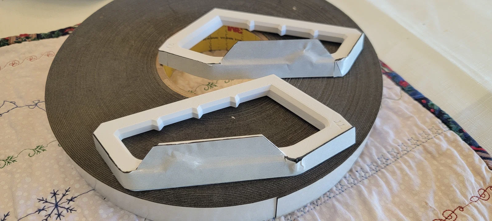 - Dán băng dính lên mô hình in trước – vì đây là bề mặt phức tạp nên bạn có thể cần dán nhiều dải nhỏ và cắt tỉa cho vừa vặn.