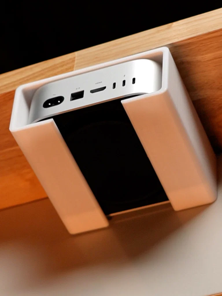 Giải pháp giá treo dưới bàn tiện lợi cho M4 Mac mini. Thiết kế in nguyên khối dễ dàng, có phần chặn tránh trượt máy và đảm bảo tản nhiệt tốt. Có tùy chọn phiên bản gắn thêm ổ cứng SSD tiện dụng cho góc làm việc của bạn.