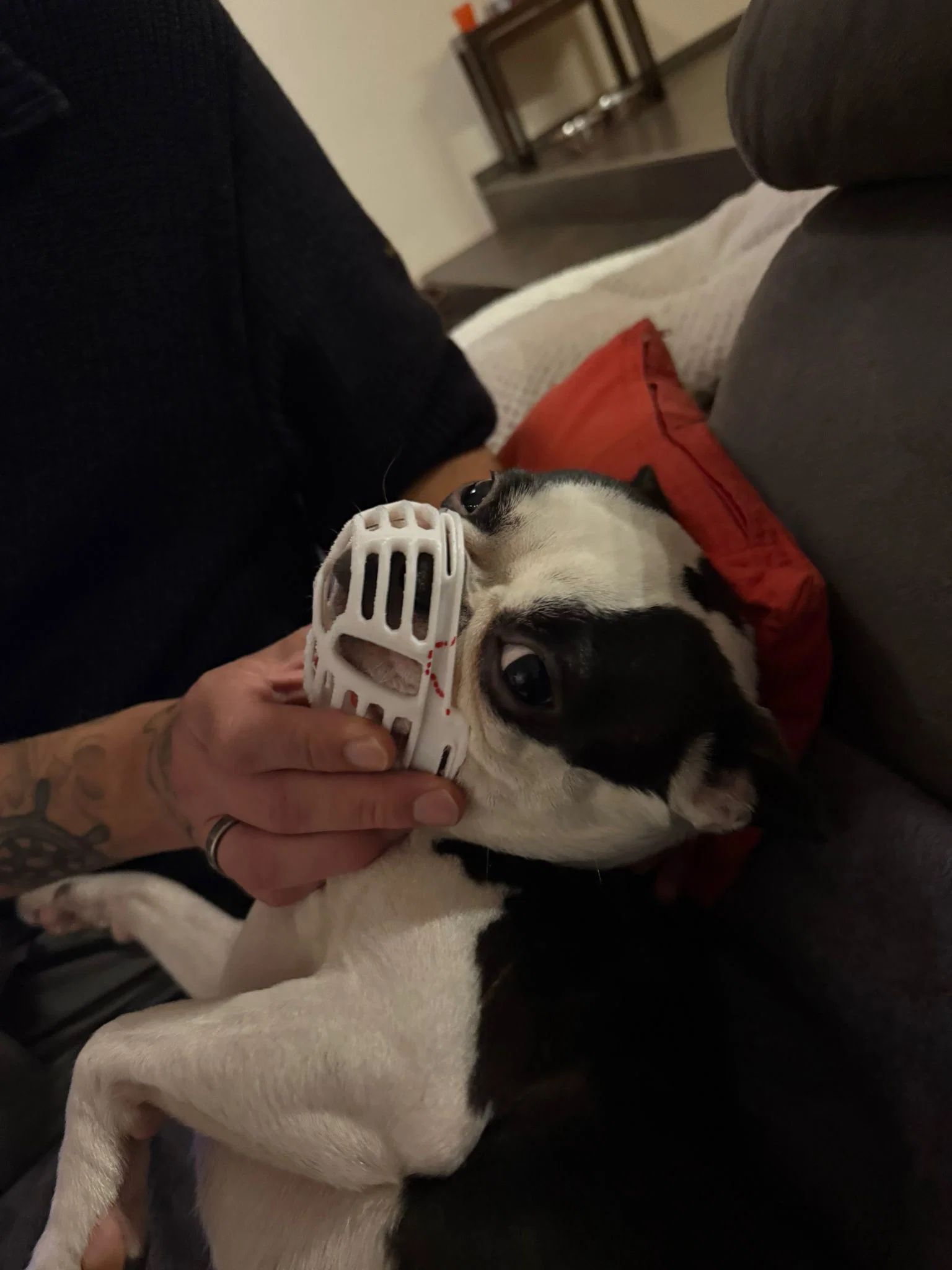 Mẫu rọ mõm in 3D dành cho các giống chó mõm ngắn với chu vi mõm 21 cm và chiều dài mũi 3 cm. Thiết kế bền bỉ với nhựa PETG, mật độ 100% cùng hỗ trợ in Tree Support, bao gồm phiên bản cải tiến có khoét lỗ mắt giúp cún cưng thoải mái hơn.