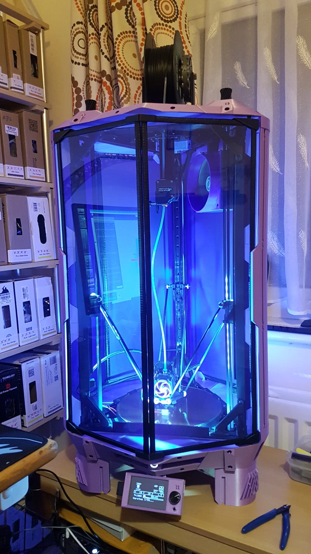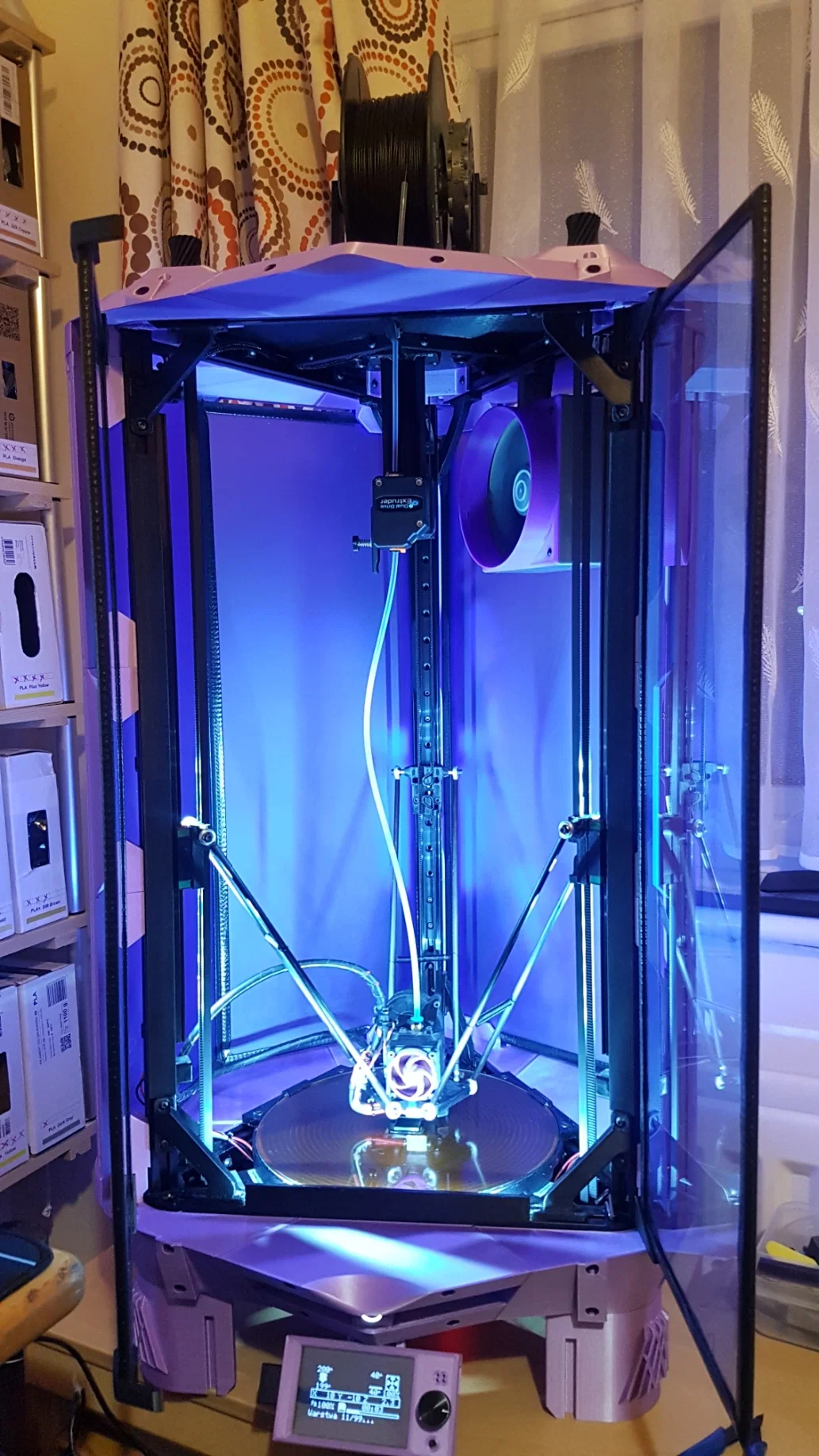 Đối với việc in, không có yêu cầu đặc biệt nào cả. Cứ in theo thiết lập quen thuộc của bạn thôi. Mình dùng infill 15%, độ dày lớp in 0.2mm, 3 lớp vỏ (walls) và tốc độ 80mm/s như cấu hình tiêu chuẩn trên dự án "Kossel on steroids" của mình.