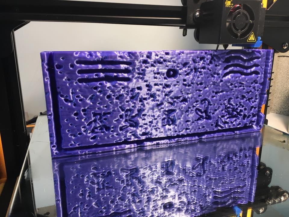 Mô hình bức tường đá từ phim Fifth Element, được chuyển đổi từ ảnh sang lithopane và cắt gọt bằng Mesh Mixer. Sản phẩm mang tính kỷ niệm từ những ngày đầu mình làm quen với máy in 3D CR-10s.