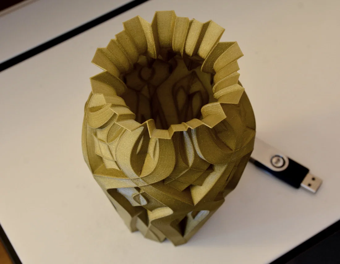 Ảnh minh họa là bình được in ở chế độ Vase Mode (in một lớp vỏ). Bạn có thể in bằng Vase Mode, hoặc in ở chế độ bình thường với 0 lớp trên cùng, 0% infill, chỉnh từ 1 lớp tường trở lên để đảm bảo độ cứng cáp và từ 3 lớp đáy trở lên. File STL là dạng khối đặc (solid). Bình in rất đẹp dù bạn dùng chế độ Vase Mode hay in thường.