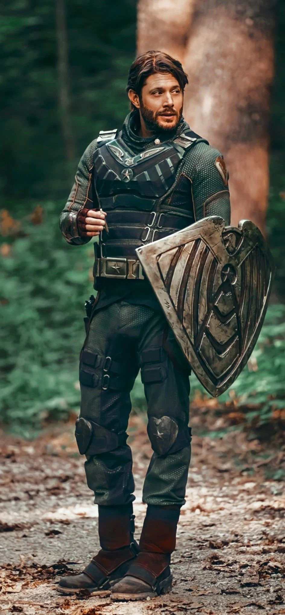 Chi tiết mình thích nhất khi tìm ảnh là phần dây đeo của khiên này được xếp thẳng hàng theo chiều dọc, khác với khiên của Captain America (xếp ngang), vì một người dùng khiên để phòng thủ còn người kia dùng nó như một vật nặng 300kg nối dài từ cánh tay mình.