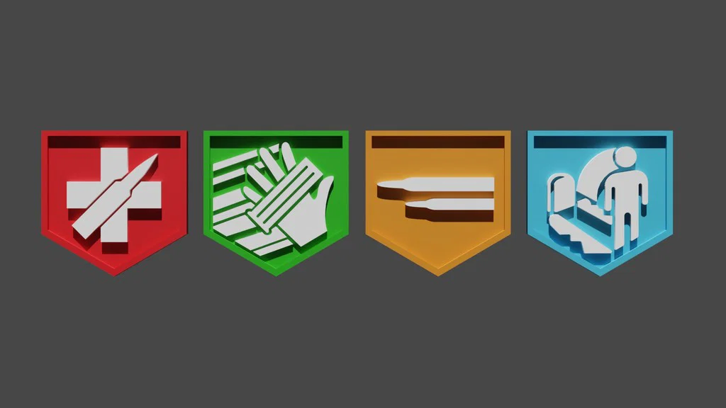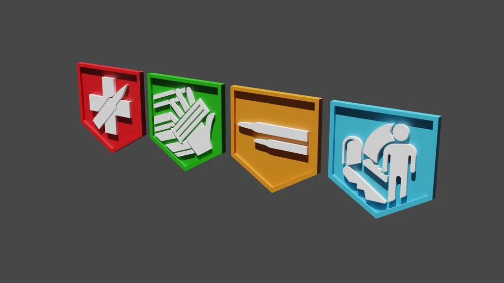 Các tấm tranh dạng huy hiệu này có thiết kế 2D nổi với đường nét sắc sảo, mô phỏng lại các logo quen thuộc như Juggernog, Speed Cola, Double Tap và Quick Revive. Mỗi chi tiết từ hình ảnh quả đạn, găng tay cho đến các biểu tượng hồi máu đều được tối ưu hóa để khi in 3D sẽ tạo ra độ nổi khối cực kỳ bắt mắt. Bạn có thể in các tấm này với nhiều màu nhựa khác nhau để làm nổi bật lên chủ đề game, sau đó gắn lên tường hoặc trưng bày trên kệ là hết ý.