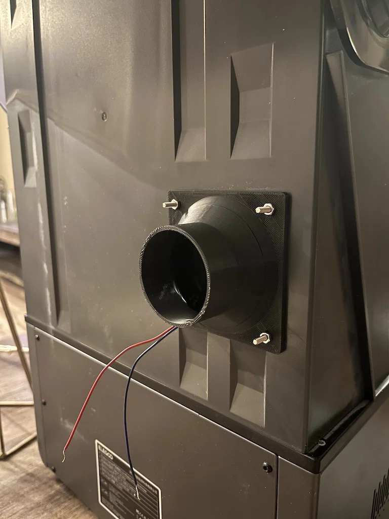 Mô hình này giúp bạn dễ dàng lắp quạt 60x60 vào cổng phụ kiện của máy in Elegoo Saturn 4/4 Ultra để hút mùi resin ra ngoài thông qua ống thông gió 50mm, bảo vệ sức khỏe khi in ấn trong không gian kín.