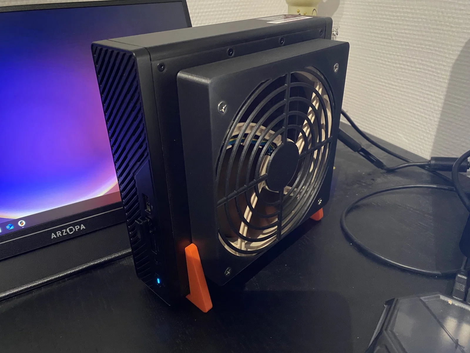 Tấm đế và lưới che dùng để gắn quạt tản nhiệt 140mm cho Minisforum MS-01. Thiết kế giúp đi dây gọn gàng bên trong máy, tương thích với quạt Noctua NF-A14 5V PWM. Cần dùng support khi in phần ngàm nối với mặt trước.