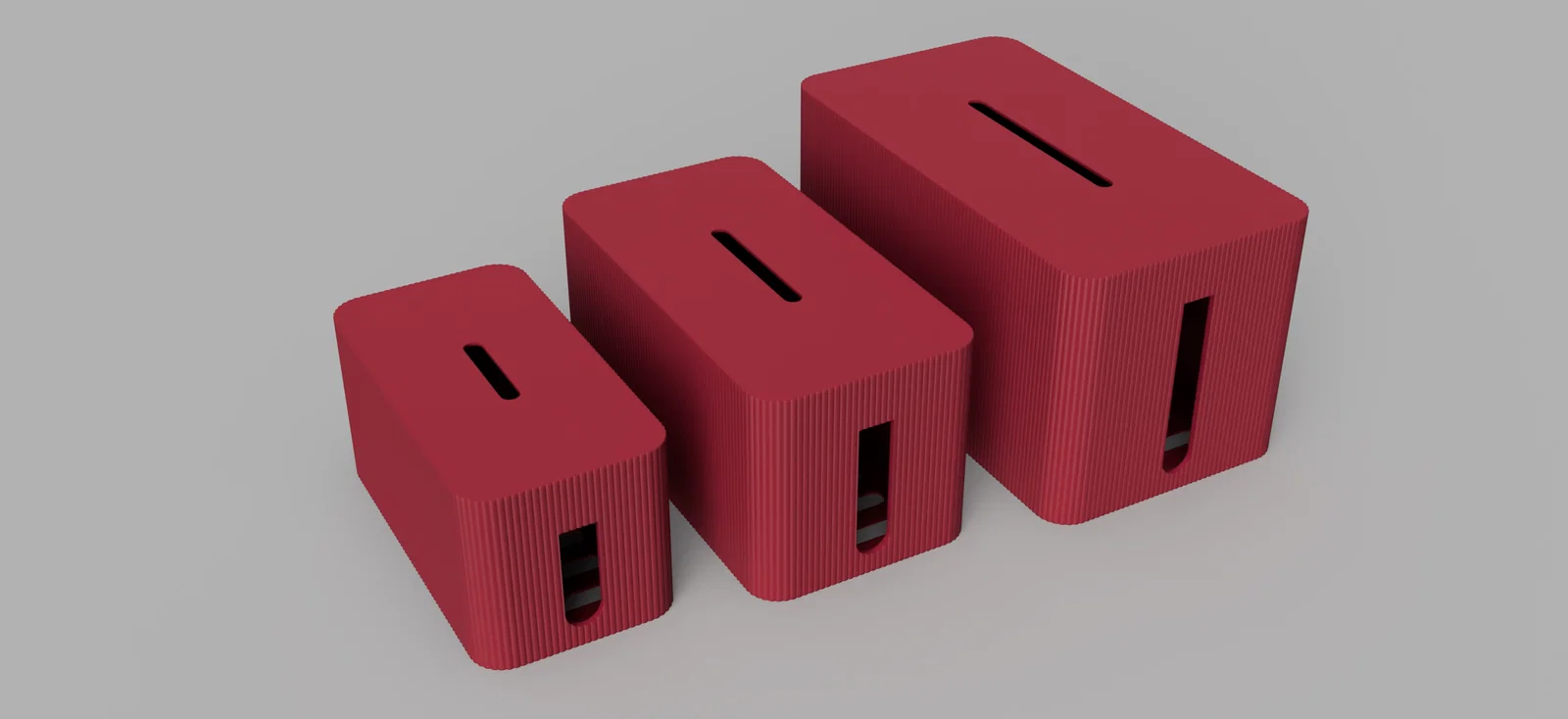 Vì cần một chiếc hộp đựng dây điện với kích thước riêng cho nhu cầu của mình, nên mình đã tự thiết kế một cái. Để mọi người cũng có thể tùy chỉnh theo ý thích, mình đã làm cho nó hoàn toàn có tính tham số (parametric). Để thuận tiện, mình cũng đã đính kèm sẵn vài kích thước phổ biến: