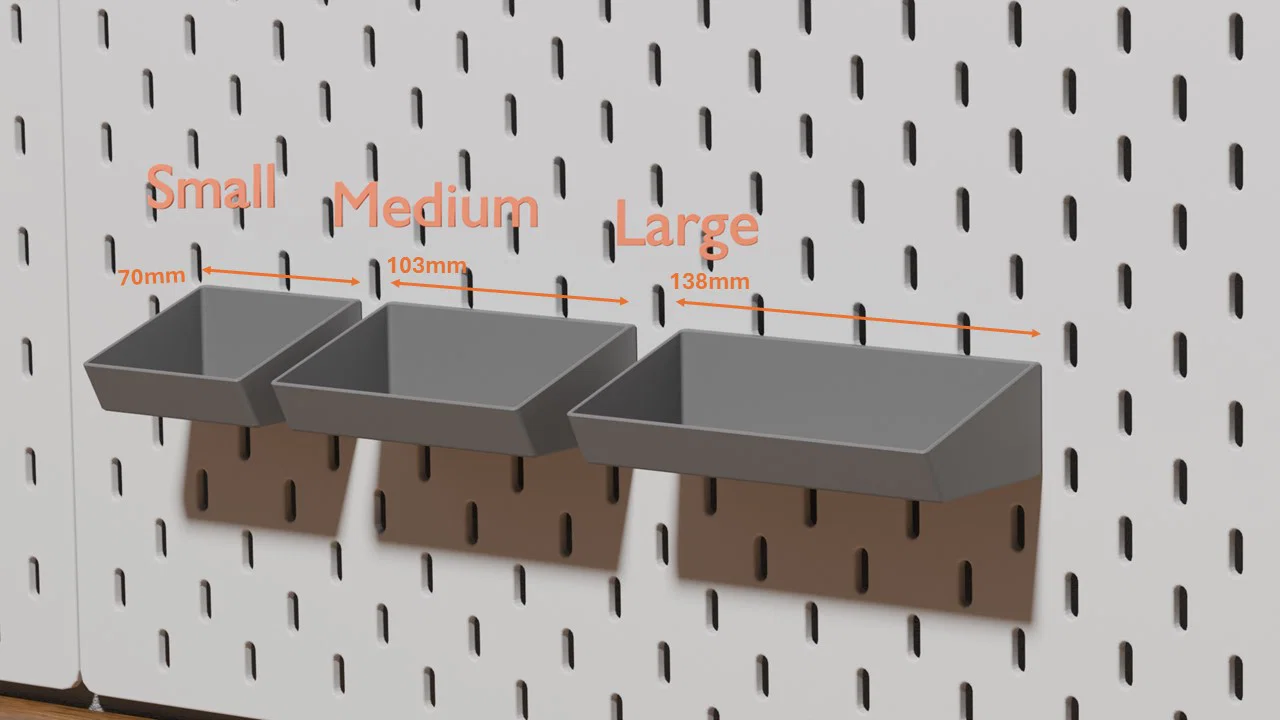 Bộ khay đựng đồ Ikea Skadis cực kỳ tiện lợi với nhiều kích thước khác nhau. Sản phẩm đi kèm các đầu nối ultimount chắc chắn, giúp bạn dễ dàng sắp xếp không gian làm việc một cách gọn gàng và khoa học trên bảng treo Skadis.