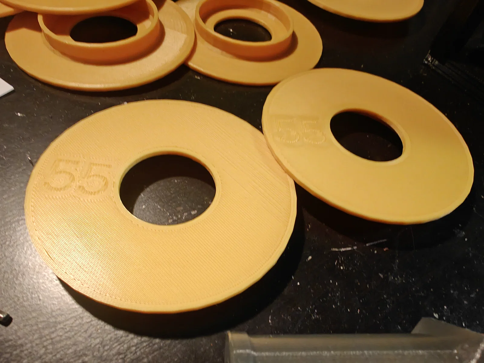 Tôi có vài cuộn sợi in rộng hơn 70mm một chút nên không vừa với trục cũ, vì vậy tôi đã làm mỏng phần chặn lại. Trục này về cơ bản đã được tôi thiết kế lại hoàn toàn trên OpenSCAD vì không thể chỉnh sửa file STL gốc.