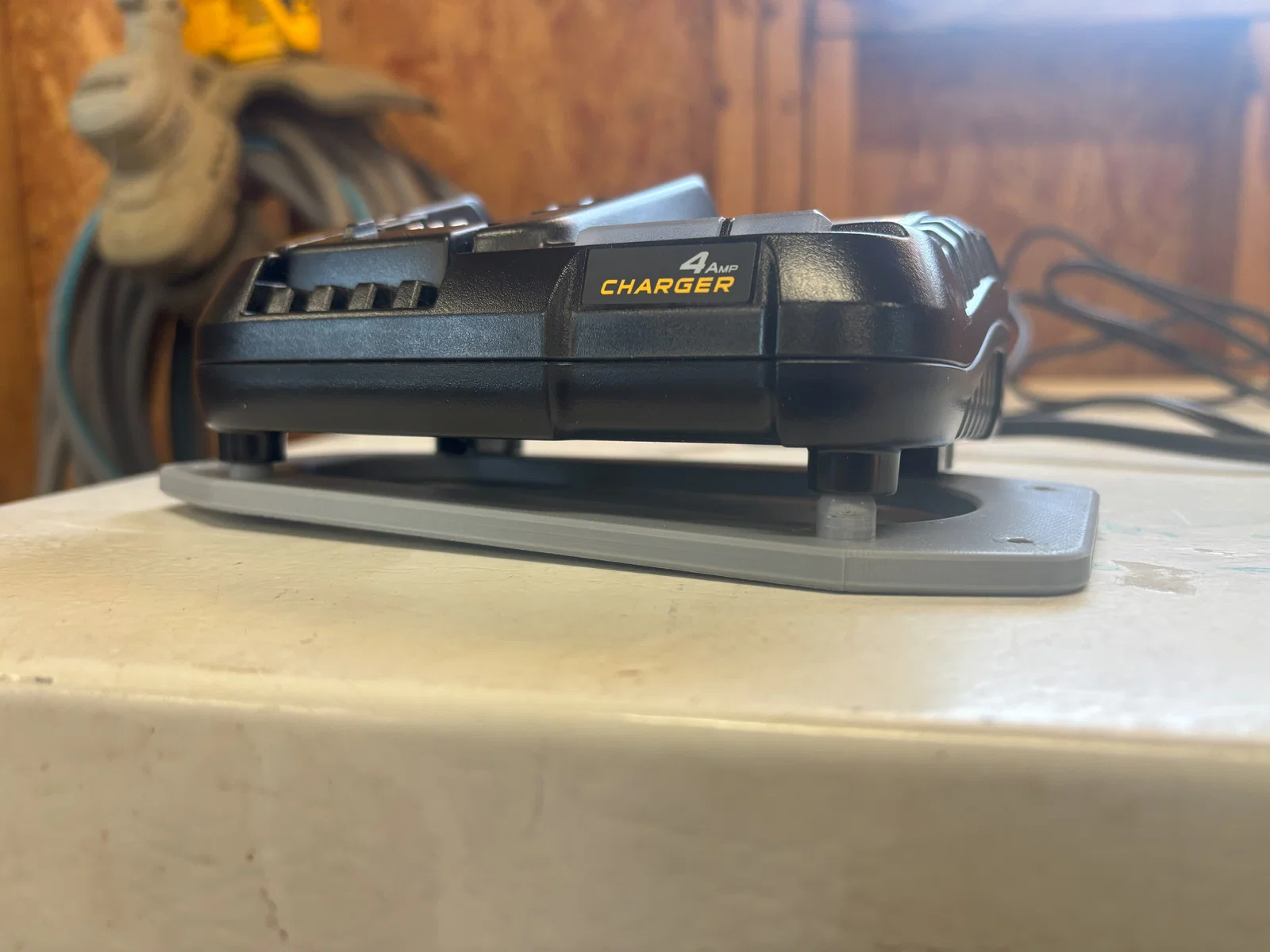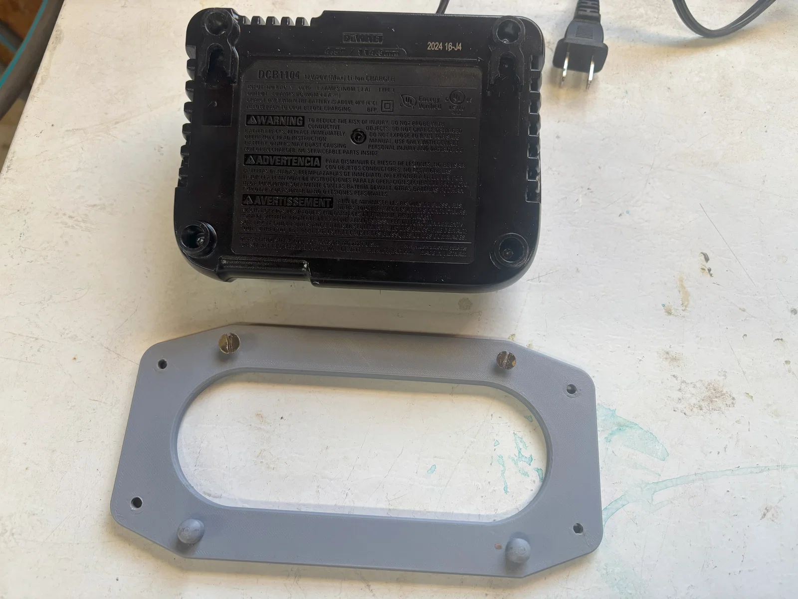 Giá treo tường cho sạc pin Dewalt DCB1104 được thiết kế thêm các chốt khóa thông minh, giúp giữ sạc cố định và chống trượt khi tháo lắp pin. Dễ dàng in bằng PLA với độ bền cao.