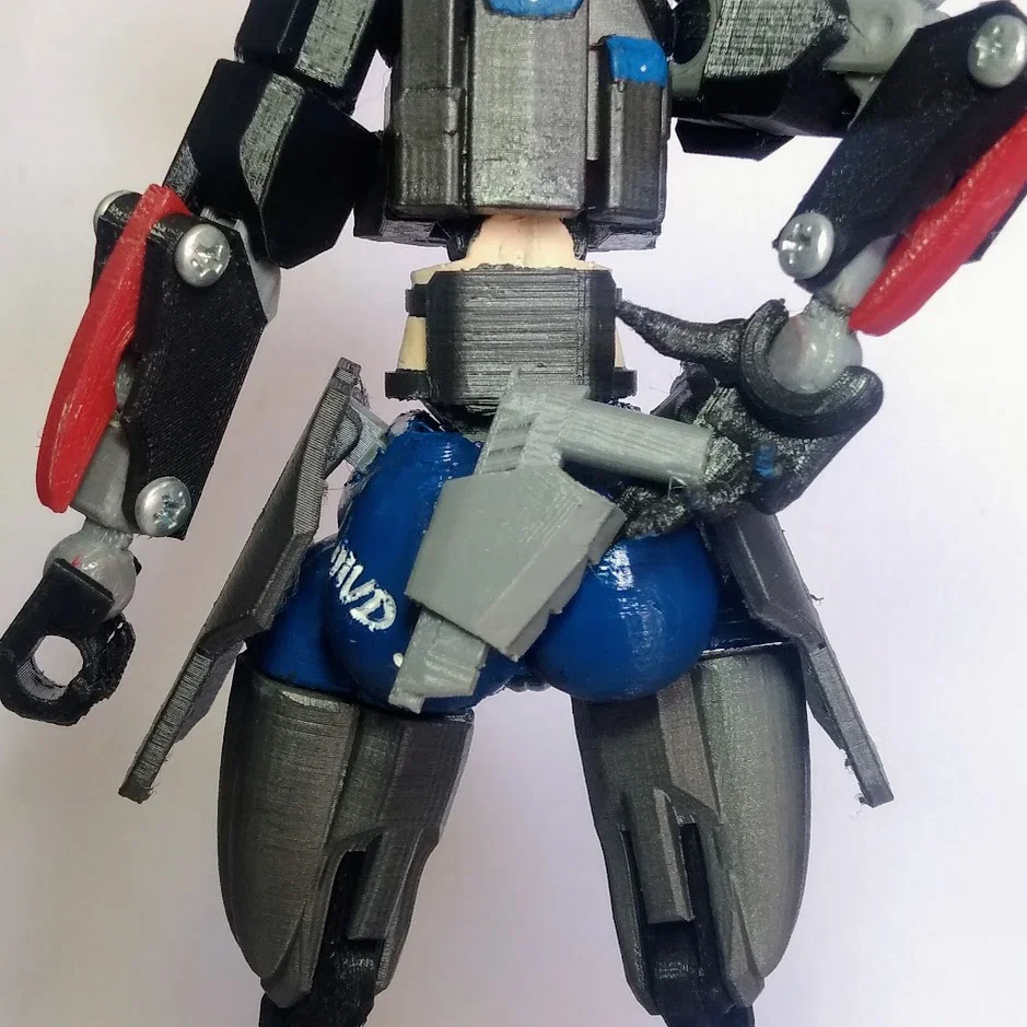 Có một phần eo mới với các lỗ cắm phụ kiện ở hai bên, phần phía sau là bản chuyển đổi từ mô hình tiêu chuẩn sang thiết kế của mình. Mình đã đính kèm một cặp giáp chắn hai bên và bao súng cho phía sau, nhưng mình rất khuyến khích các bạn tự thiết kế thêm phụ kiện riêng cho phần này.