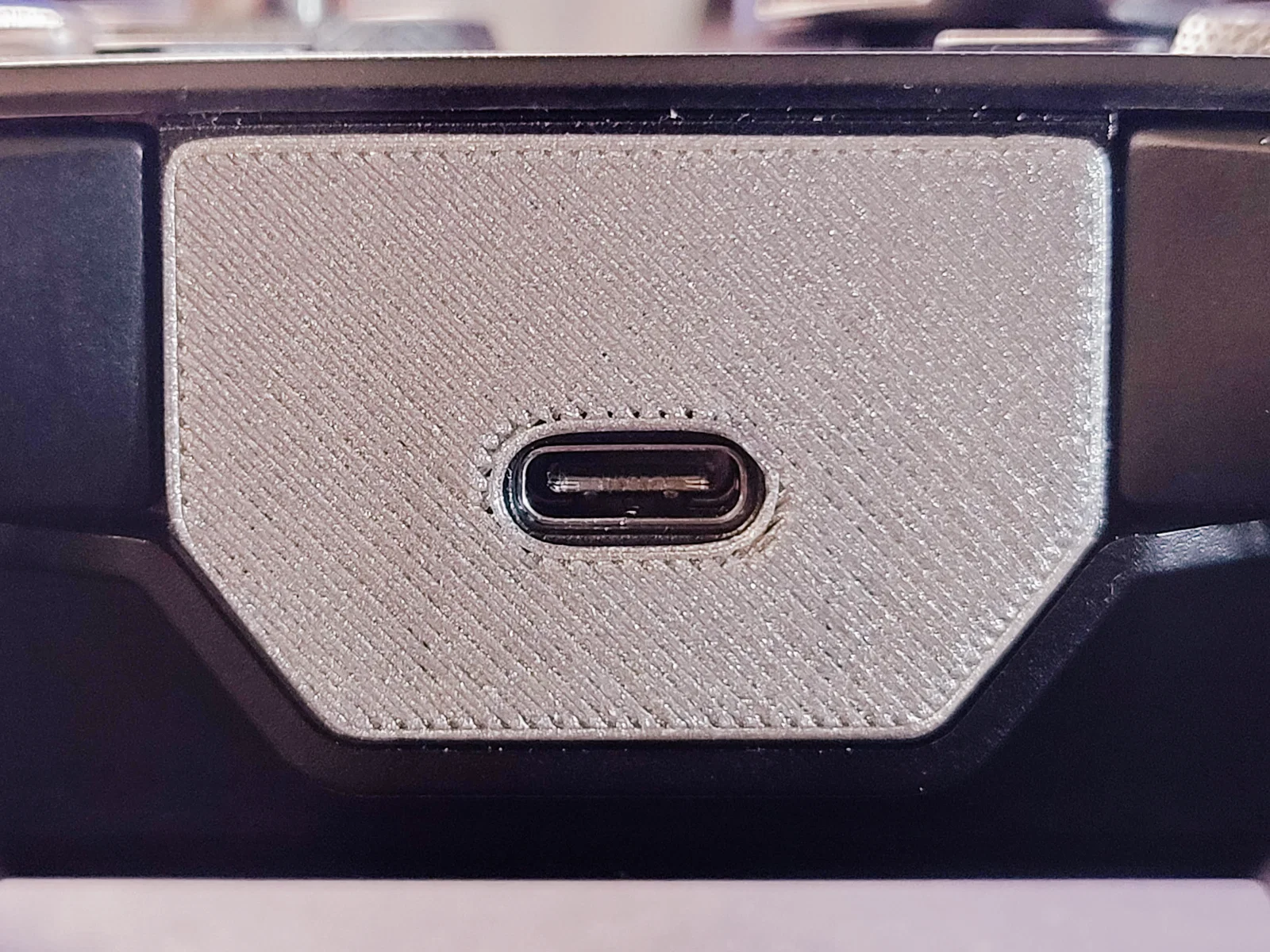 Mình thấy khó chịu khi nhìn cái ngàm trống ở phía trên tay cầm nên đã làm ra cái nắp đậy này. Nếu in đúng thông số gợi ý, nắp sẽ đủ mỏng để không gây vướng víu với cáp sạc, ít nhất là với cáp đi kèm theo tay cầm.