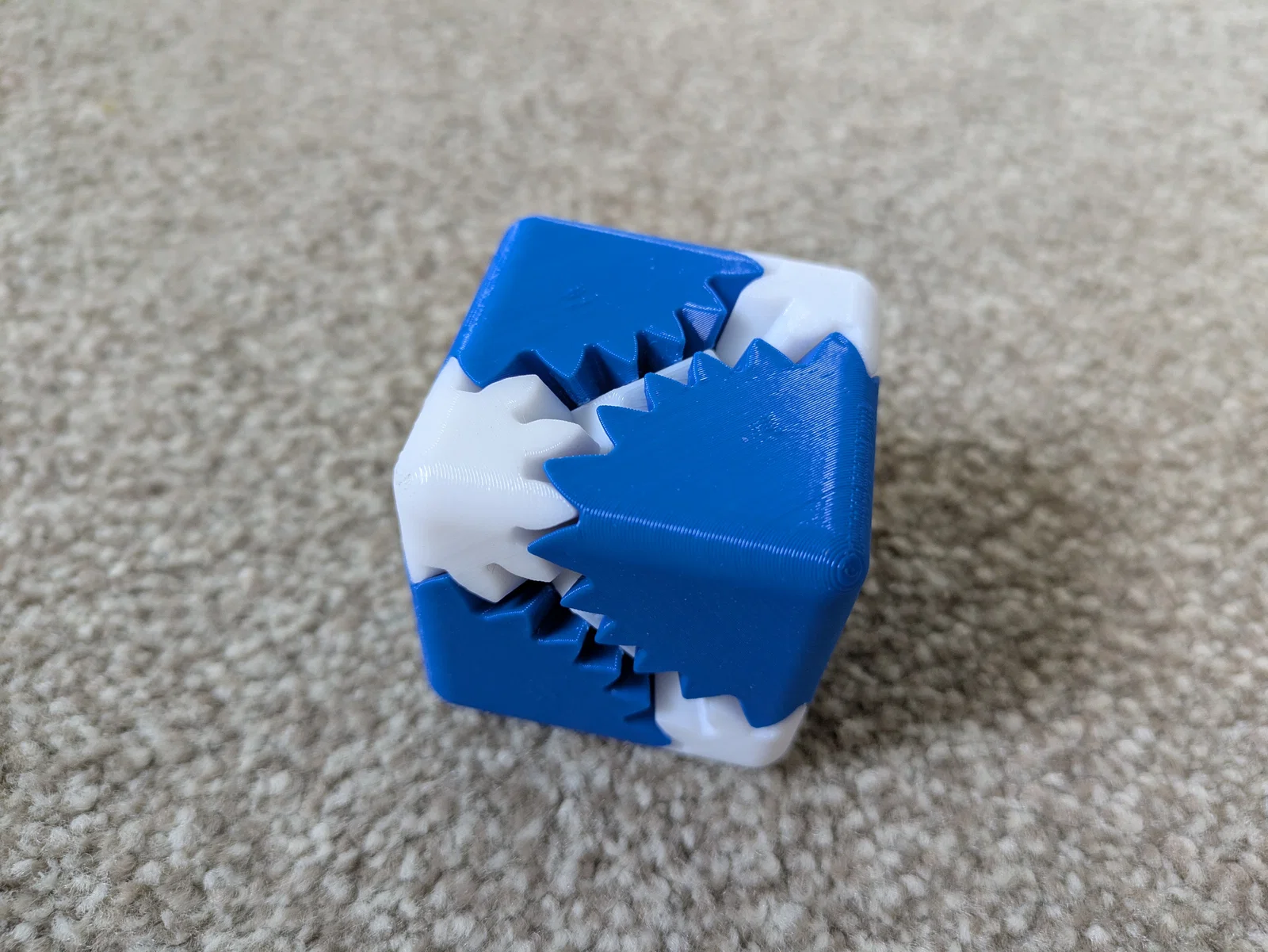 Một bản remix của mẫu cube gear tuyệt vời từ Emmett, nhưng được bo tròn các góc để cầm nắm thoải mái và dễ dàng hơn. Đây là món đồ chơi fidget cực kỳ thú vị và gây nghiện cho bàn làm việc của bạn.