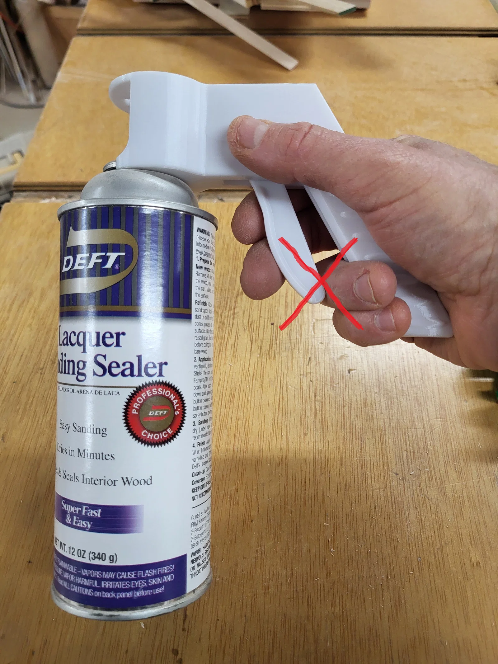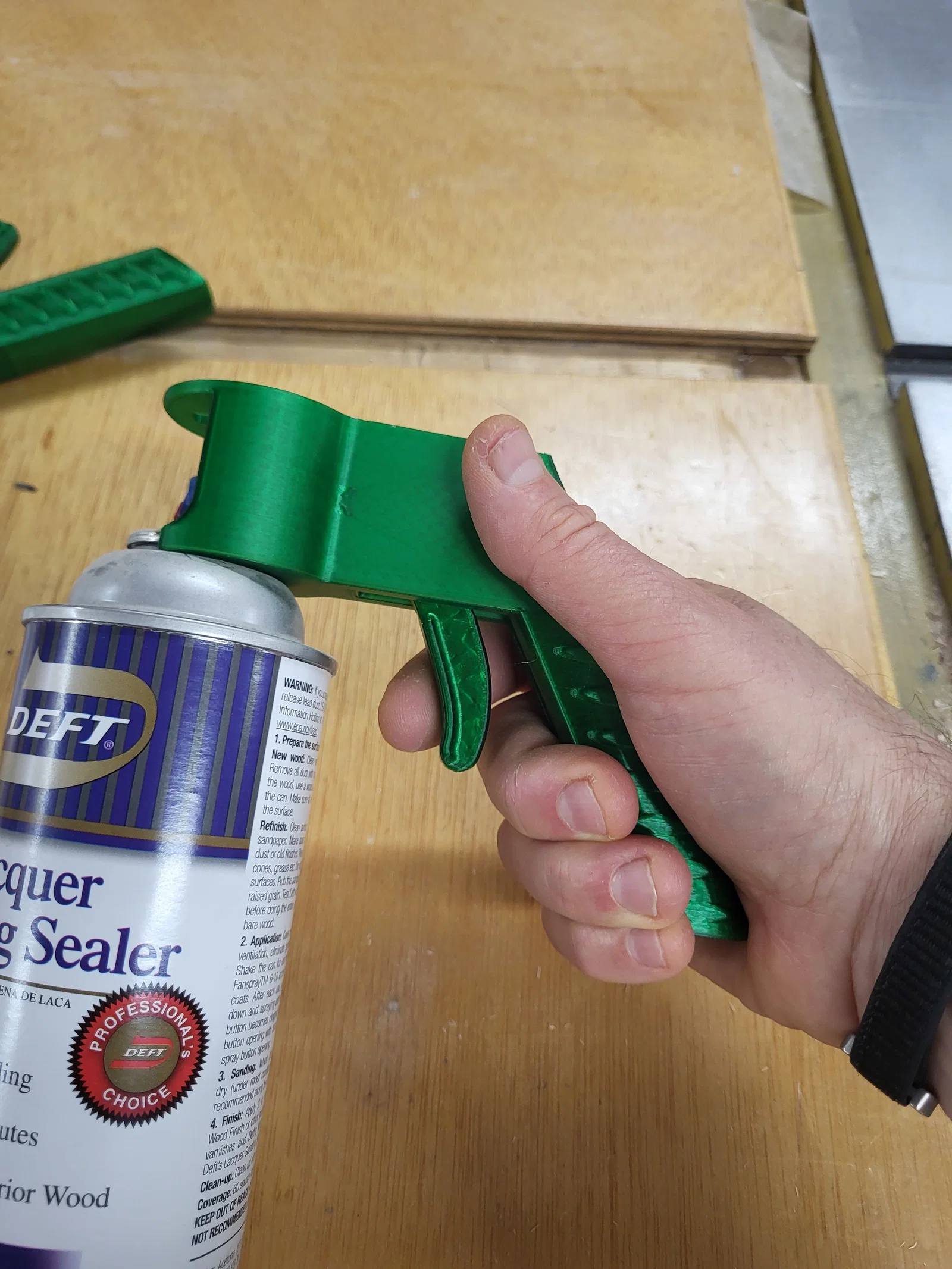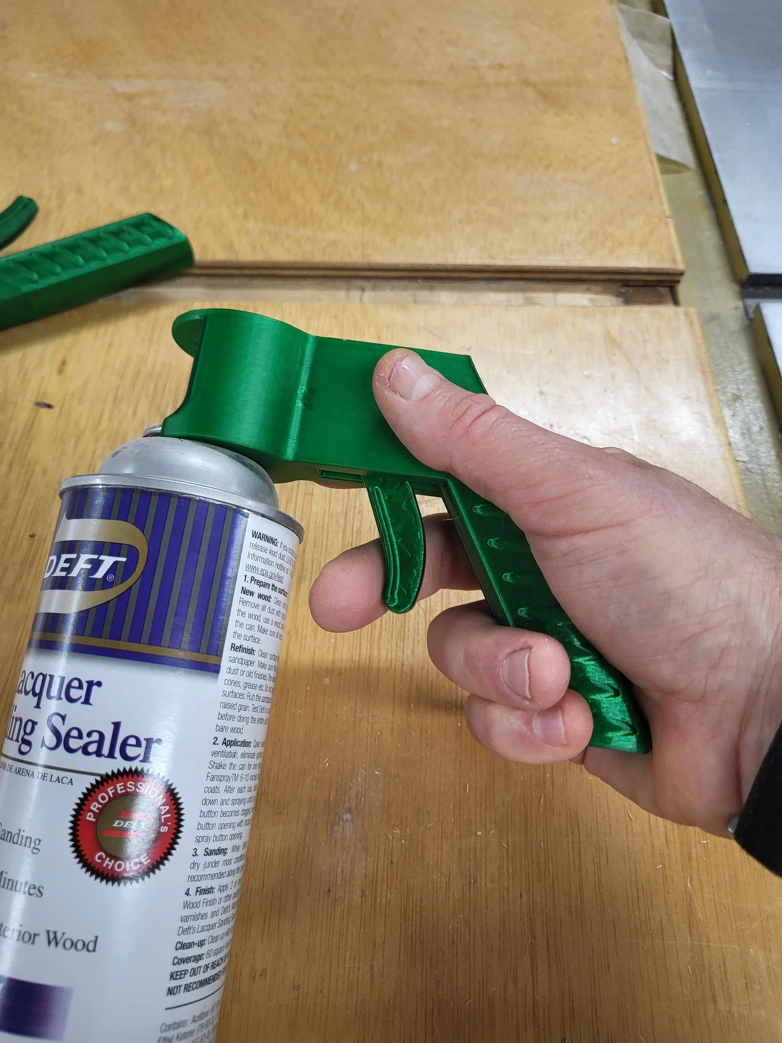 Phiên bản tay cầm bình sơn xịt được thiết kế lại với phần cò ngắn hơn, giúp cầm nắm chắc chắn và kiểm soát tốt hơn. Thiết kế tối ưu với thông số in tiết kiệm nhựa nhưng vẫn đảm bảo độ cứng cáp cần thiết khi sử dụng.
