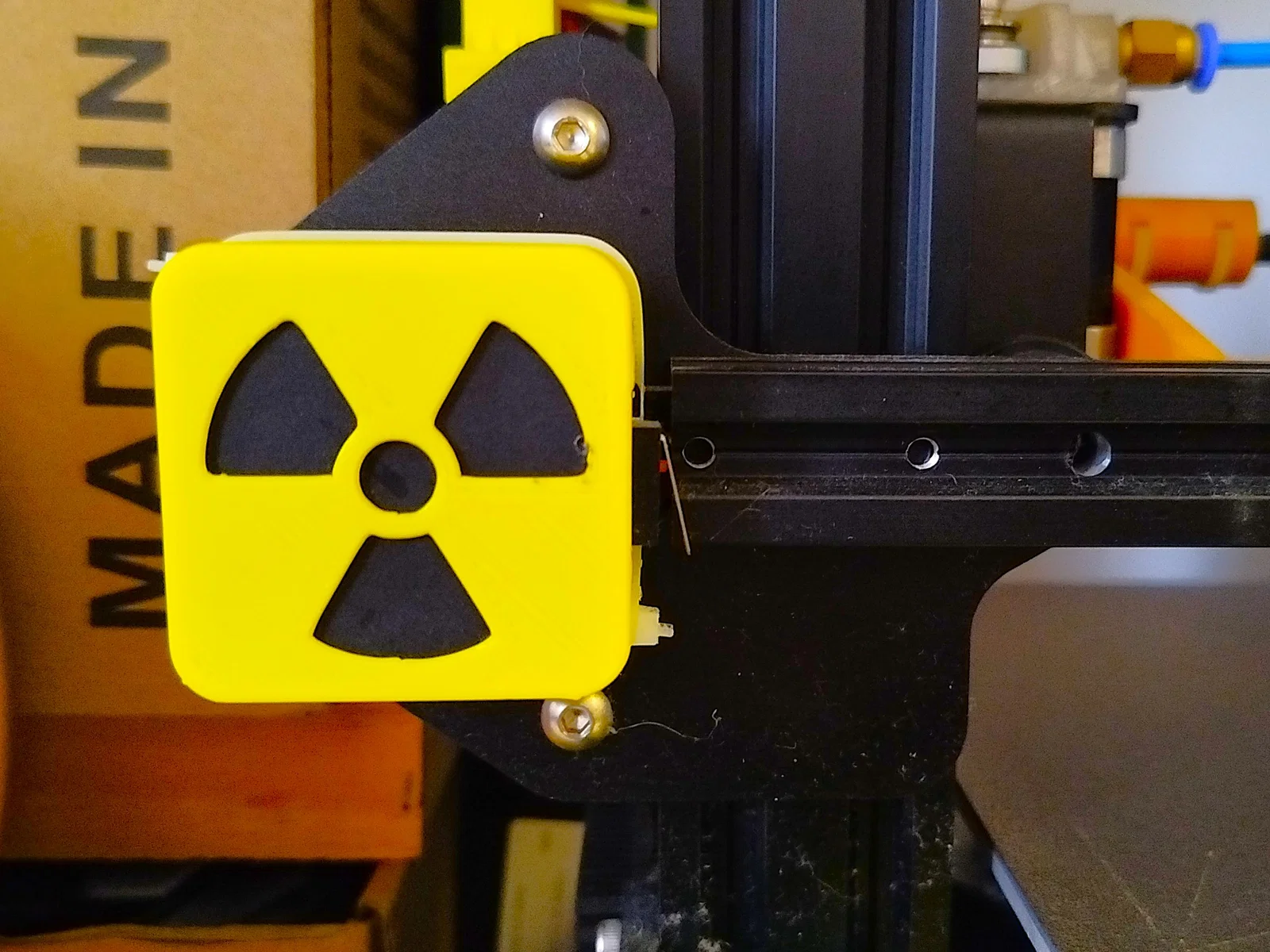Nắp che động cơ bước X cho Ender-3 (kiểu cảnh báo phóng xạ)