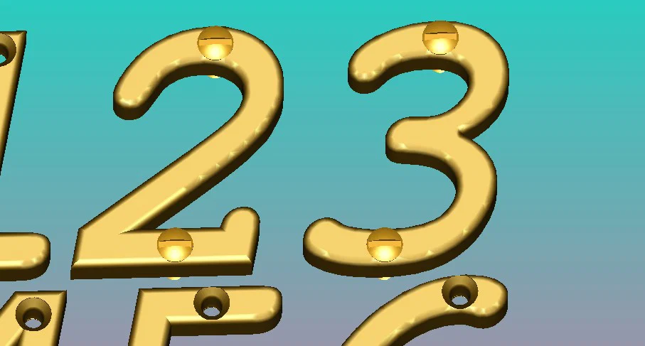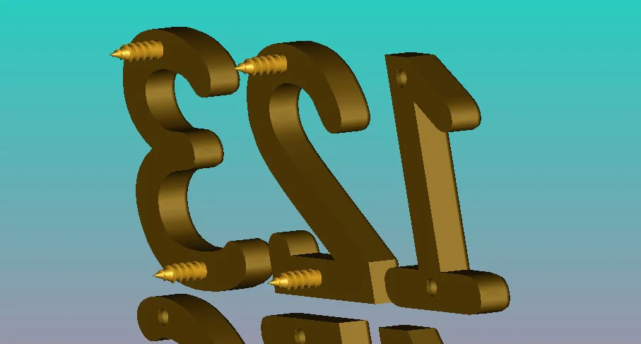 Để lắp đặt mỗi chữ số, bạn cần chuẩn bị thêm 2 con vít gỗ (tốt nhất là loại vít đầu dù chìm/lồi - "Linsen-senk").