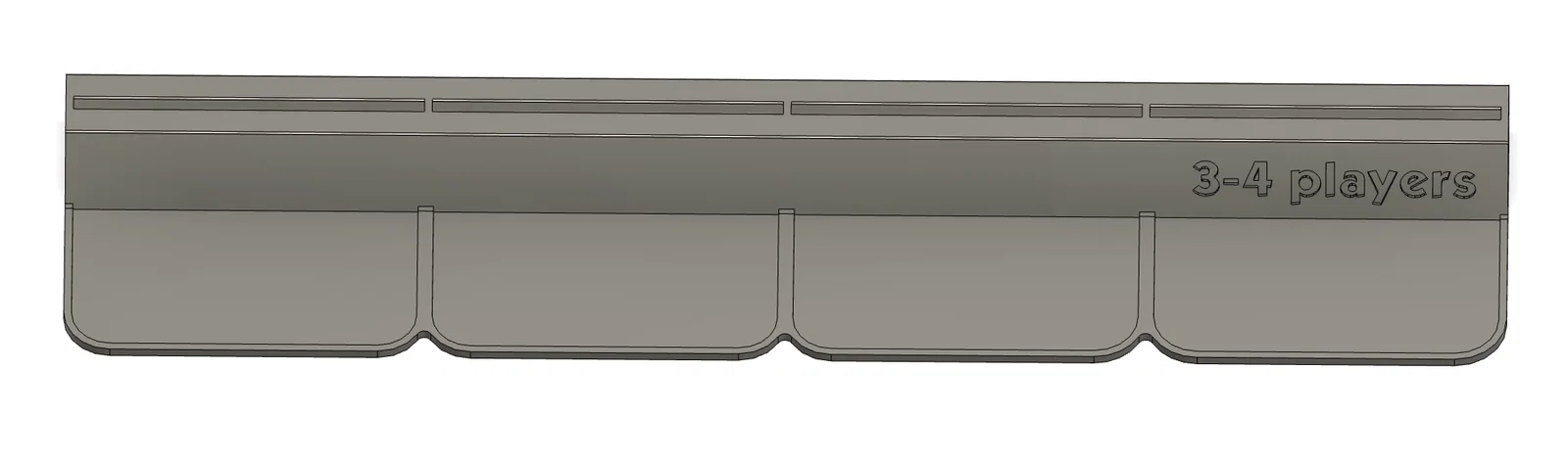 Phần đế được chia thành các rãnh giữ bài chắc chắn, đảm bảo các lá bài luôn đứng vững dù bạn có vô tình chạm nhẹ vào bàn. Đặc biệt, sản phẩm còn được tích hợp dòng chữ "3-4 players" ngay trên mặt đế, giúp bạn dễ dàng nhận biết và quản lý số lượng người chơi trong ván game của mình một cách chuyên nghiệp. Đây là món đồ in 3D hữu ích cho cả những nhóm chơi thân thiết tại nhà hoặc các câu lạc bộ board game chuyên nghiệp, nơi sự gọn gàng luôn được ưu tiên hàng đầu để tập trung vào những chiến thuật đỉnh cao.