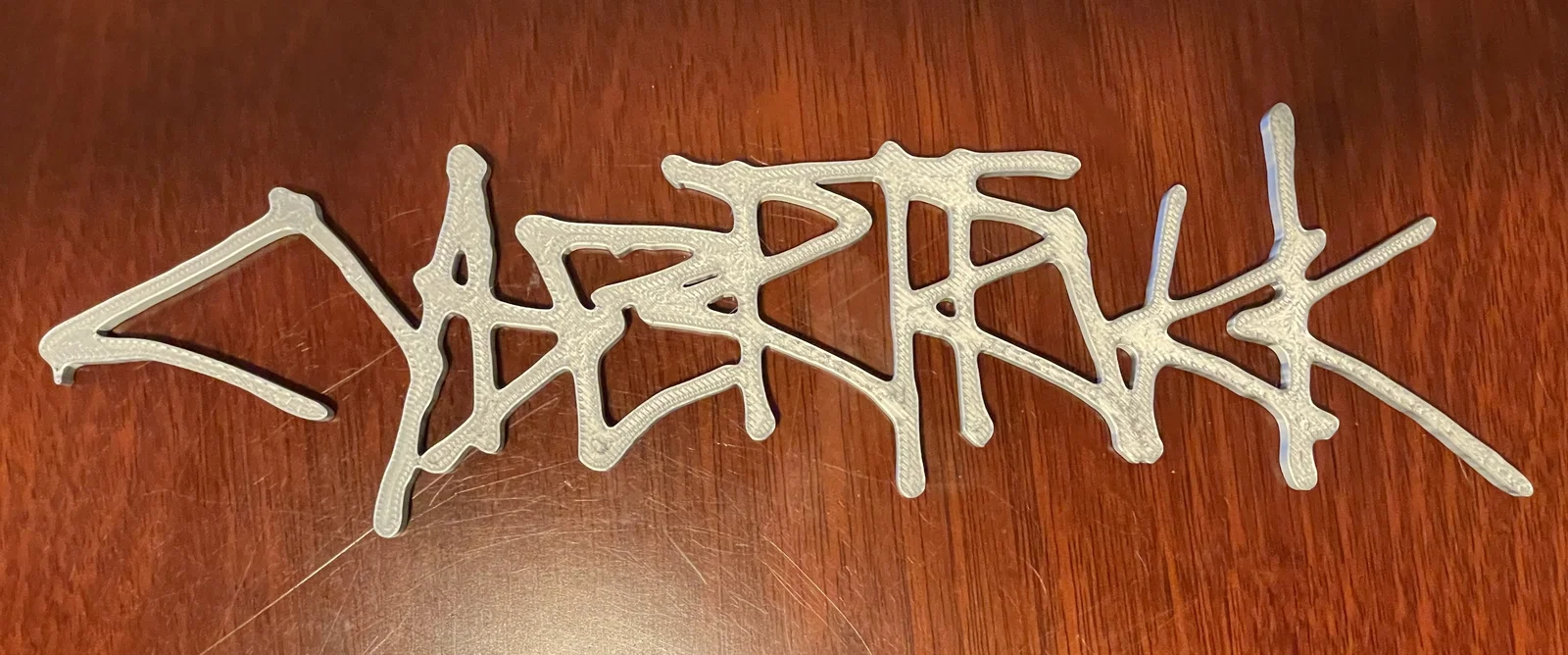 Logo Tesla Cybertruck được thiết kế với hiệu ứng sơn xịt chảy đầy cá tính. Mẫu này thích hợp để trang trí bàn làm việc hoặc treo tường, dễ in và không cần hỗ trợ (support). Một lựa chọn tuyệt vời cho các fan của dòng xe Cybertruck.