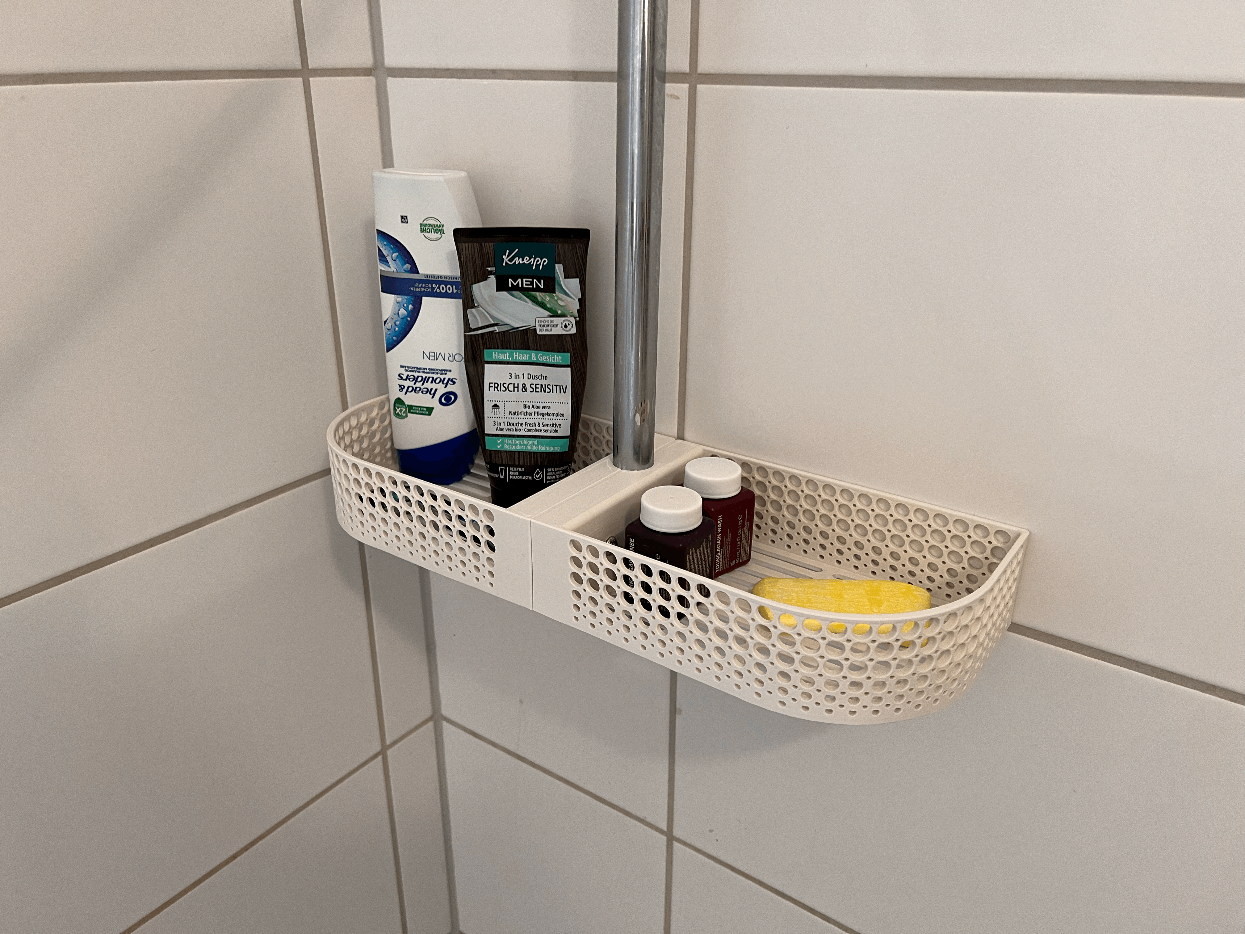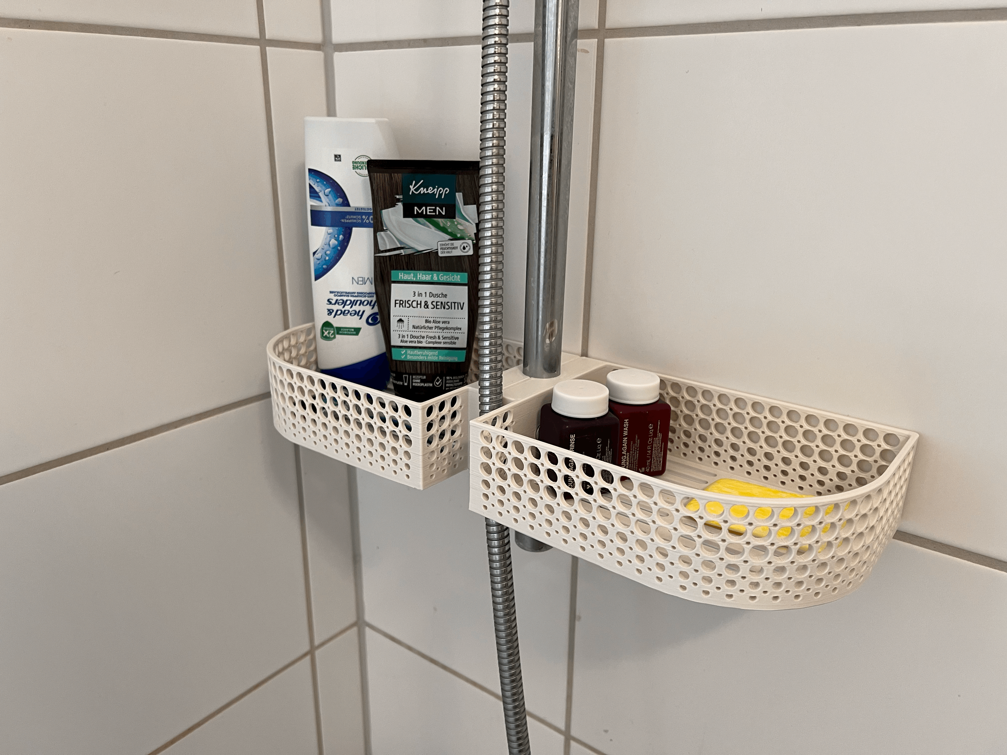 Có hai phiên bản của giỏ đựng: một phiên bản có lỗ hổng ở giữa để luồn dây vòi sen và một phiên bản không có lỗ. Cả hai mẫu đều tương thích với các loại thanh treo có đường kính từ 22 đến 28 mm.