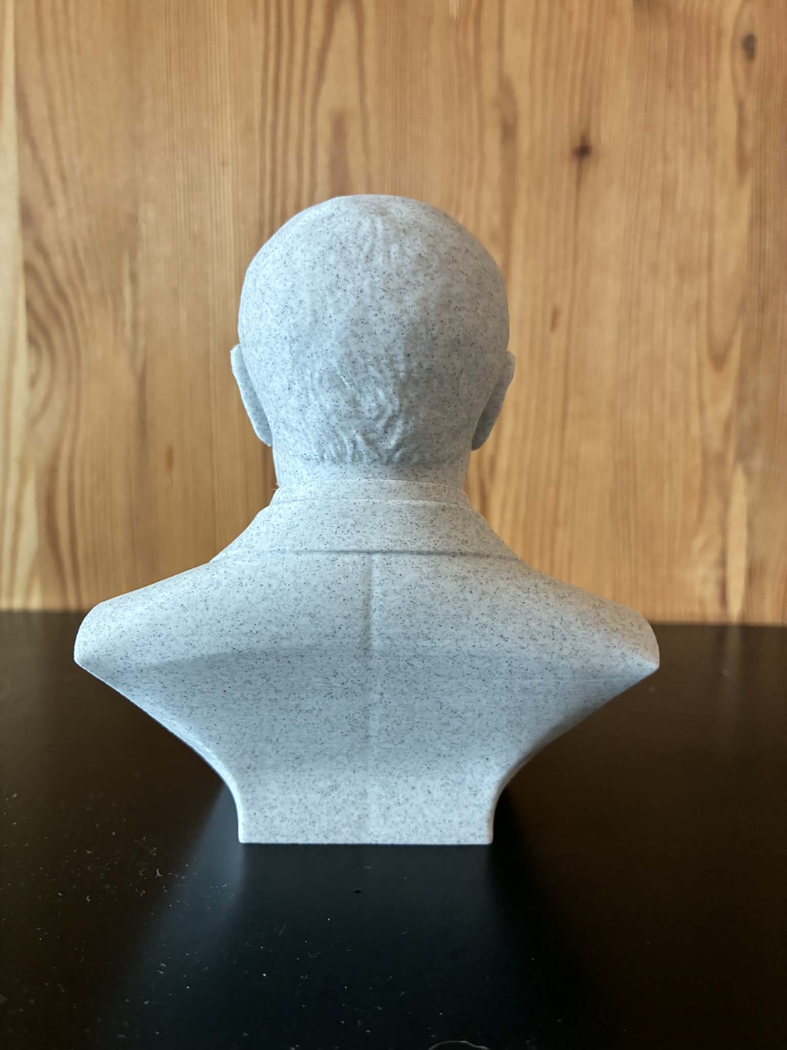 Mô hình in 3D này mang đến một cách diễn giải điêu khắc trung thực, làm nổi bật các khối cơ mặt và giúp gương mặt trở nên sắc nét, dễ nhận diện. Biểu cảm trung tính và chừng mực giúp củng cố vẻ quyết đoán của nhân vật, đồng thời tổng thể tác phẩm mang phong cách tượng bán thân cổ điển, tạo nên một hình ảnh tinh tế, rõ ràng và bền vững với thời gian.