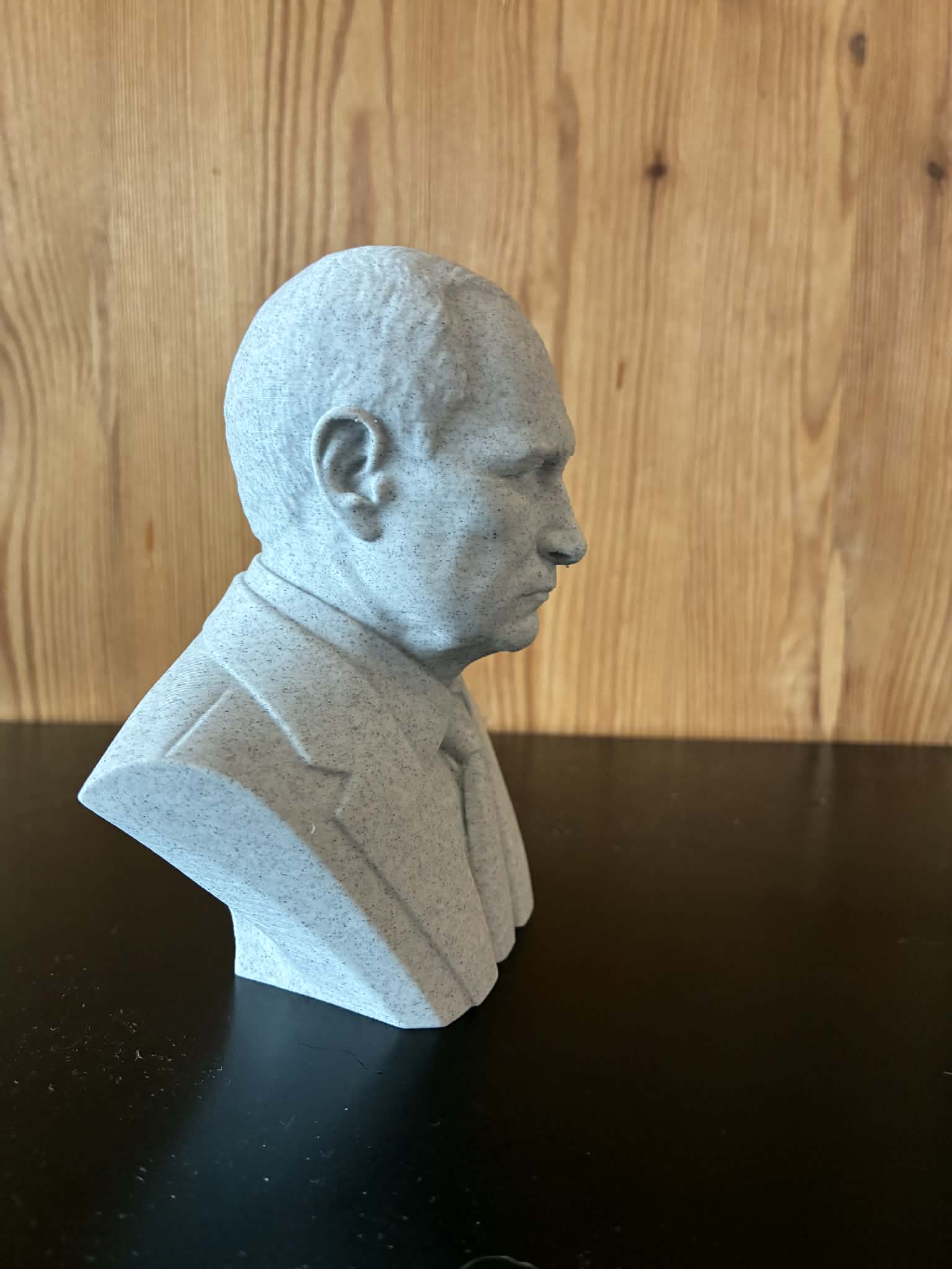 Mô hình tượng bán thân 3D của Vladimir Poutine được điêu khắc tinh xảo, tái hiện chân thực những đường nét gương mặt đặc trưng của nhà lãnh đạo nước Nga.