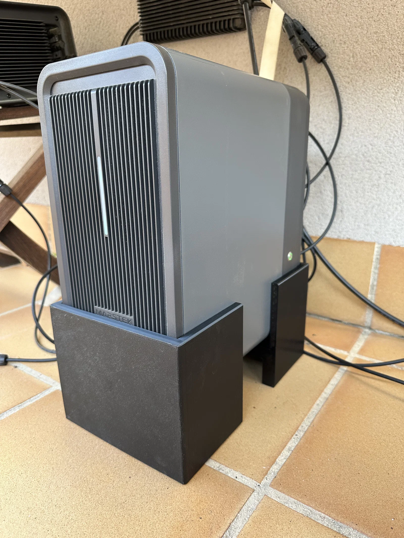Giải pháp chân đế đơn giản cho pin Marstek B2500, giúp nâng pin cao hơn khỏi mặt đất để tránh bụi bẩn và hơi ẩm. Thiết kế thông minh tiết kiệm vật liệu, in được với ABS hoặc PETG mà không cần support.