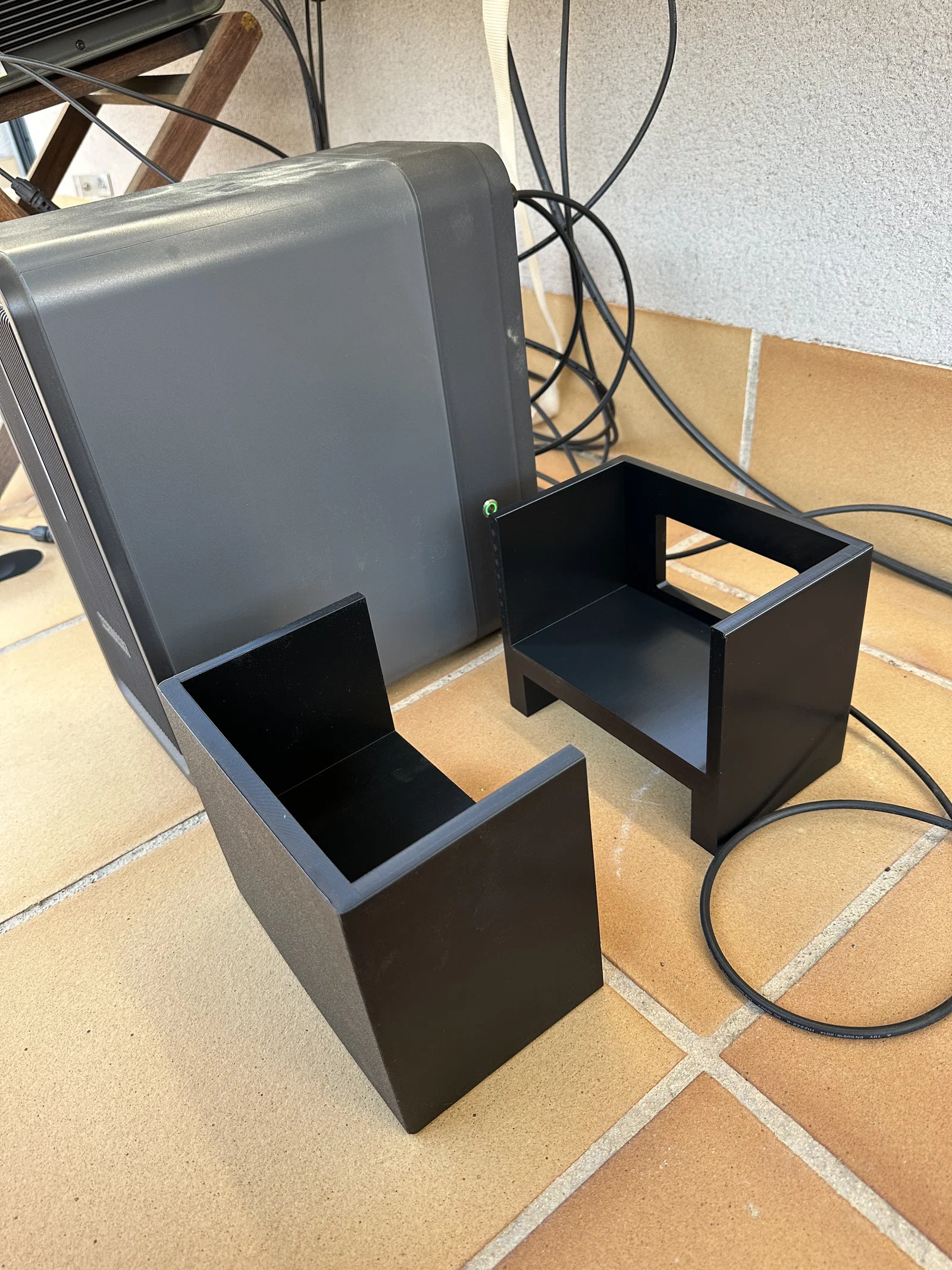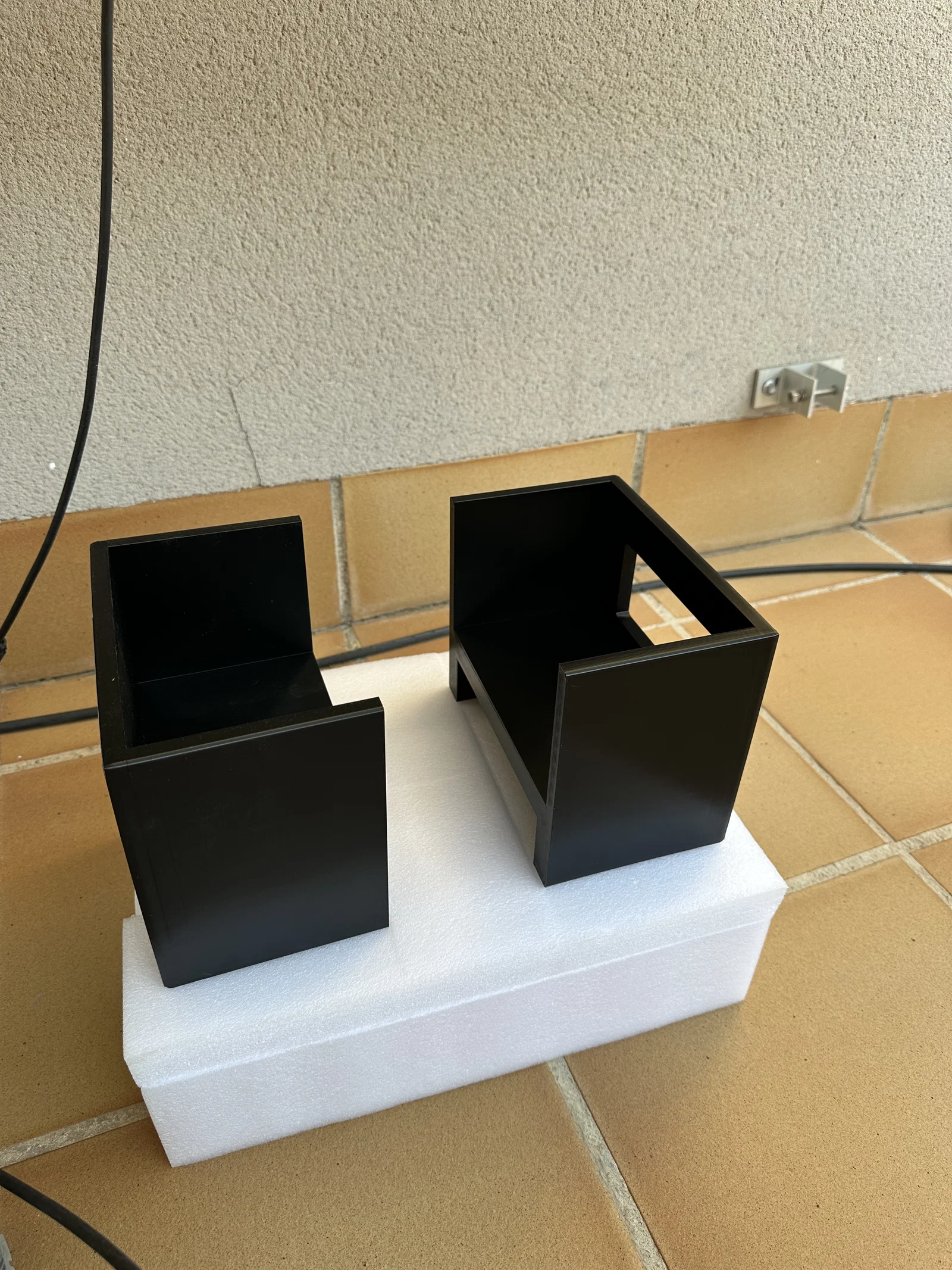 Mình có vài viên pin Marstek B2500 để ngoài sân thượng nên hơi lo chuyện bụi bặm với nước nôi làm hư hỏng. Vì vậy, mình đã tự thiết kế mấy cái chân đế này để kê pin lên cao, giúp bảo quản thiết bị an toàn và yên tâm hơn.
