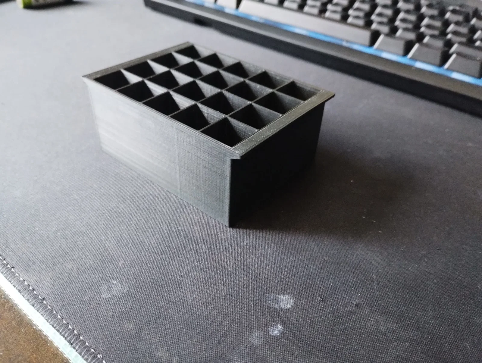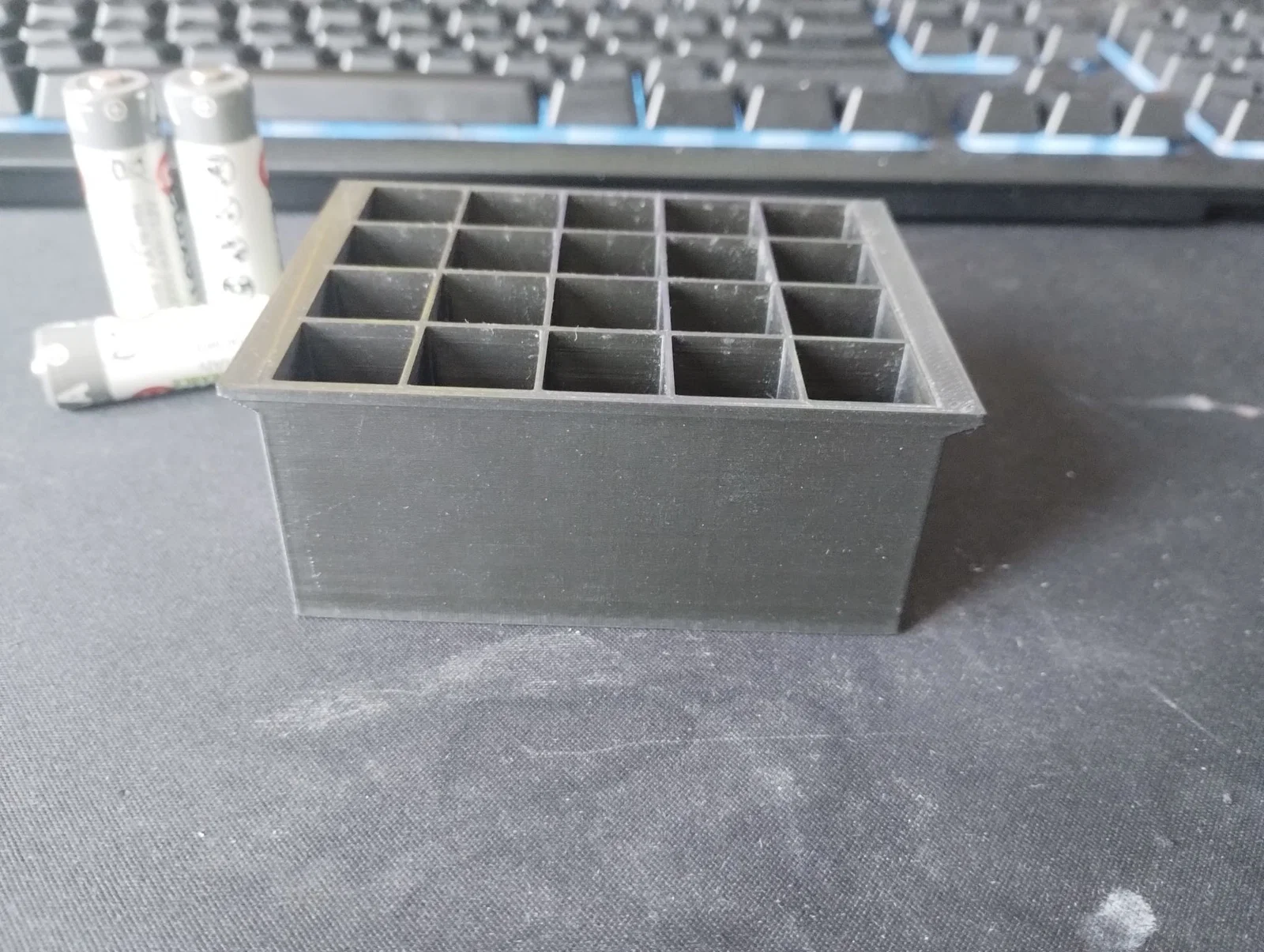 Bạn đang tìm cách sắp xếp các loại pin AA và AAA trong nhà một cách khoa học? Mẫu thiết kế khay đựng pin 20 ngăn (cấu trúc 4x5) này chính là giải pháp in 3D tuyệt vời giúp bạn quản lý linh kiện điện tử gọn gàng hơn. Với kích thước nhỏ gọn chỉ 91x37x67mm, sản phẩm dễ dàng đặt trên bàn làm việc hay trong hộc tủ. Thiết kế này được tối ưu hóa để in dễ dàng bằng vật liệu PLA, không cần sử dụng support hay brim, giúp bề mặt sản phẩm hoàn thiện đẹp mắt. Hãy in ngay chiếc khay này để không gian của bạn trở nên ngăn nắp, hiện đại và chuyên nghiệp hơn bao giờ hết.