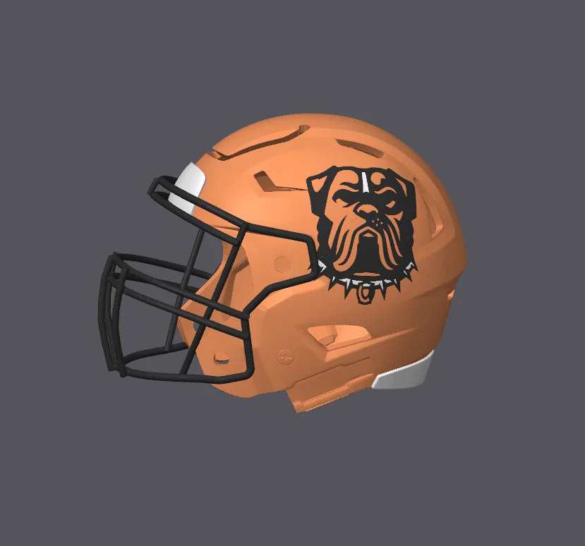 Mô hình mũ bảo hiểm bóng bầu dục Cleveland Browns phiên bản logo thay thế. Thiết kế chuyên dụng để in 3D và trưng bày. Tương thích tốt với AMS, hỗ trợ tách màu linh hoạt cho các bộ phận.