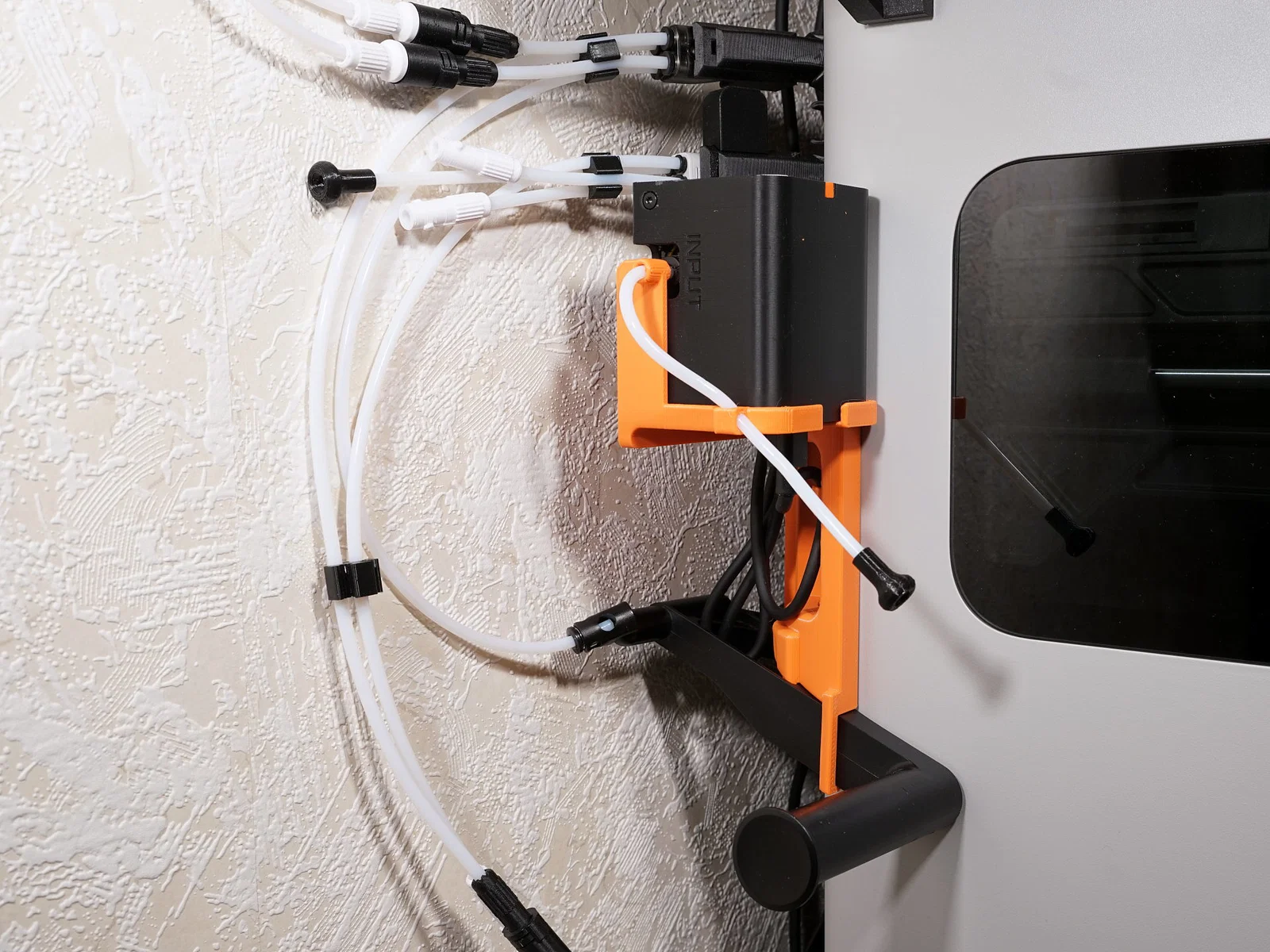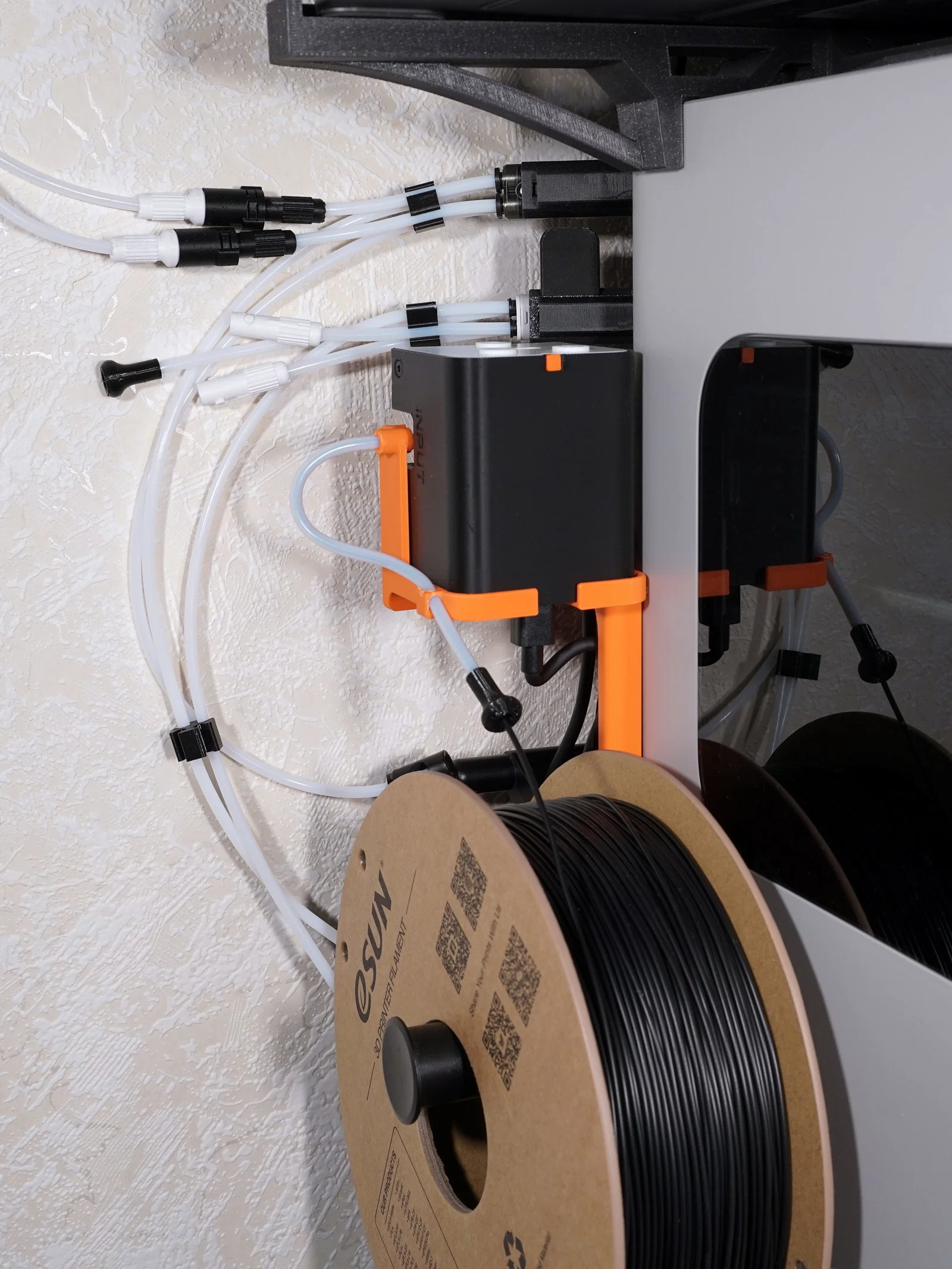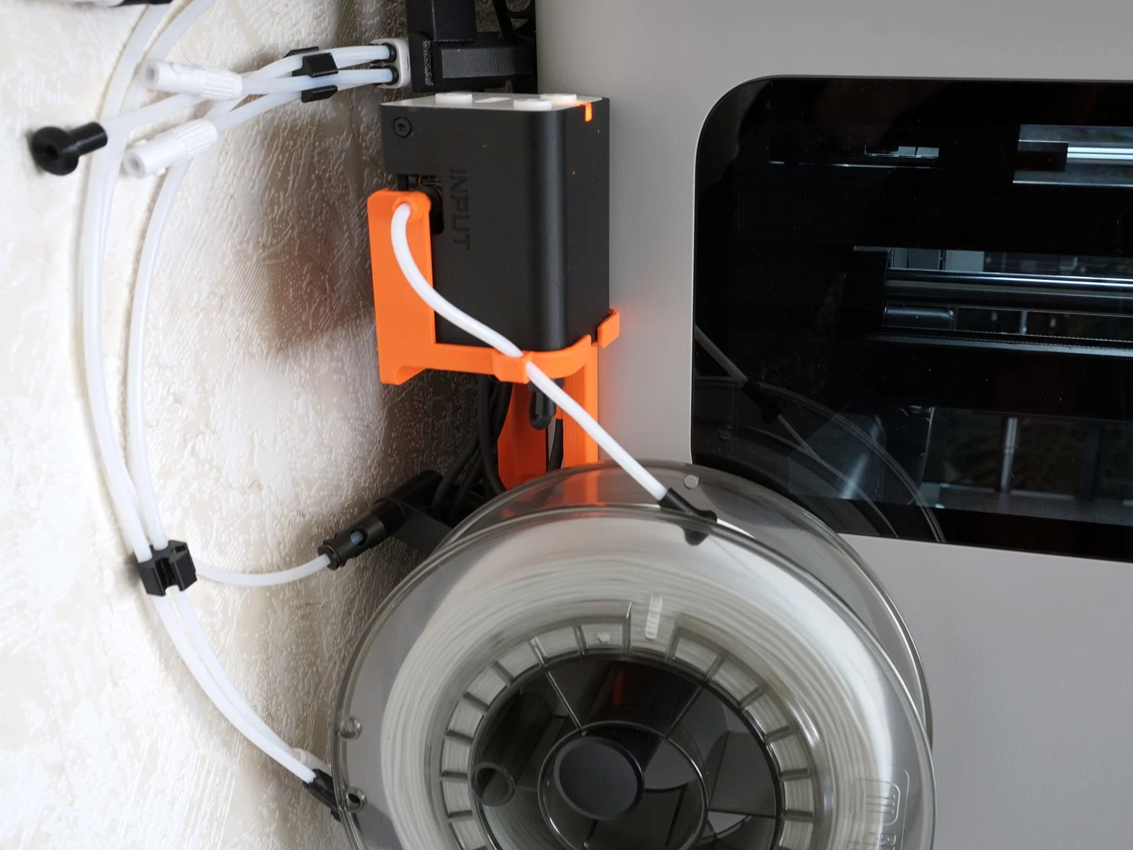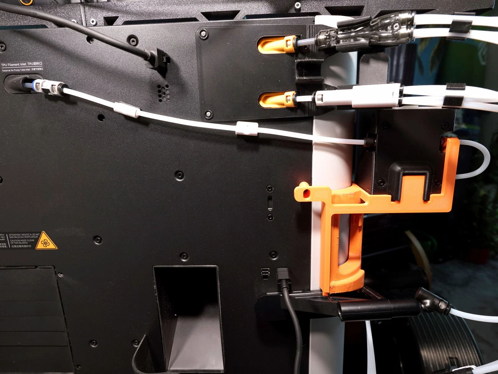 Khung gắn (mounting frame) cho module hỗ trợ TPU trên dòng máy in H2X không phù hợp với nhu cầu của mình vì mình muốn tiếp tục sử dụng giá đỡ cuộn nhựa gắn ngoài cùng với "Khung gắn bên hông cho bộ chuyển đổi 4-1 mới". Khung gắn này được thiết kế để đặt lên trên giá đỡ cuộn nhựa và cố định vào máy in chỉ bằng một con ốc. Giờ đây, bạn có thể nạp nhựa TPU thông qua AMS-HT hoặc giá đỡ cuộn nhựa gắn ngoài một cách dễ dàng.