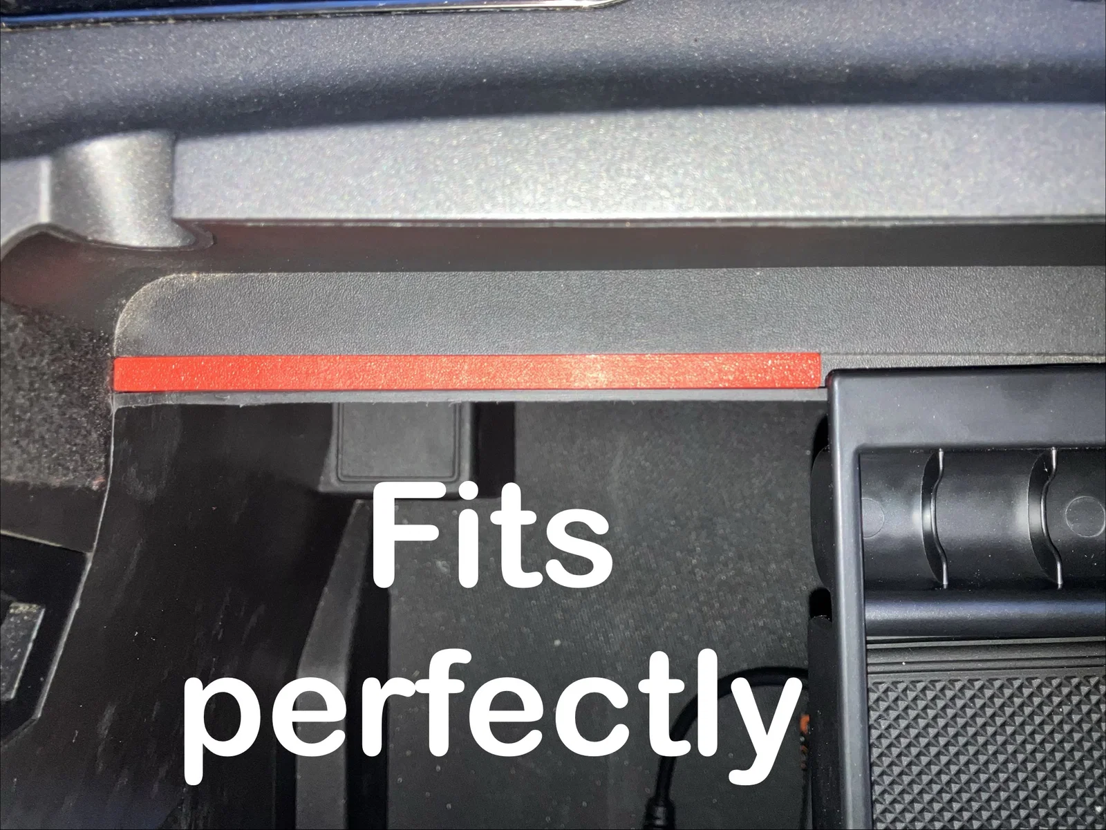 Phụ kiện này được thiết kế với kích thước cực kỳ chính xác là 127 x 6 x 6.7 mm, đảm bảo vừa vặn hoàn hảo vào vị trí rãnh trên bệ tỳ tay của dòng xe Ford F-150 đời 2015-2020. Nhờ thiết kế nhỏ gọn và tinh tế, khi lắp đặt vào, thanh chặn gần như chìm vào không gian nội thất, mang lại vẻ ngoài thẩm mỹ như một linh kiện gốc của nhà sản xuất. Bạn không cần phải lo lắng về việc mất thẩm mỹ hay cản trở thao tác đóng mở khay đồ nhờ sự tinh giản trong thiết kế này.