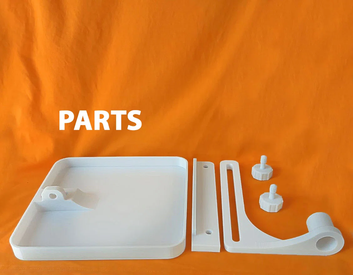 Mình đã thiết kế một chiếc giá đỡ phễu dành cho những ai vì một lý do nào đó mà chỉ có thể thao tác bằng một tay. Cánh tay của giá đỡ có thể điều chỉnh linh hoạt để phù hợp với nhiều kích cỡ chai lọ khác nhau. Giá đỡ này giúp cố định cả phễu lẫn chai rỗng. Phần đế tiện lợi được thiết kế kèm khung sẽ hứng trọn những giọt chất lỏng dư thừa, giúp giữ cho khu vực làm việc của bạn luôn sạch sẽ.