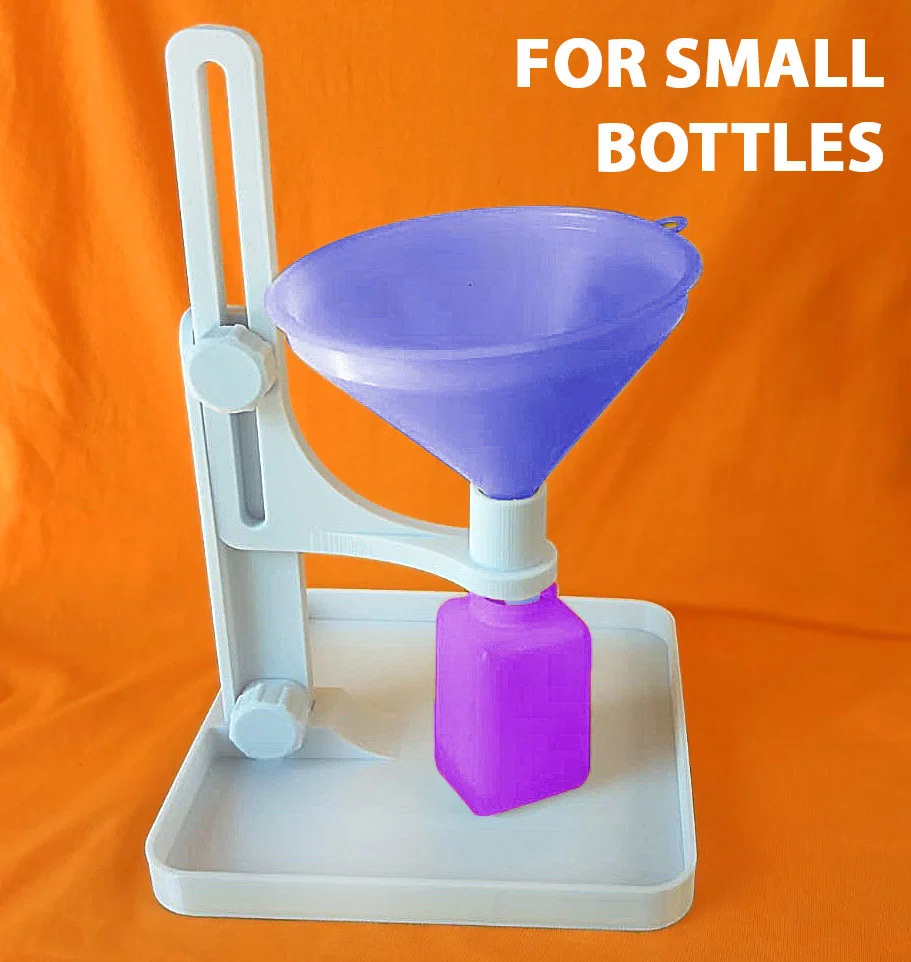 Bạn có thể đổ đầy dung dịch vào cả chai nhỏ lẫn chai lớn chỉ với một tay nhờ thiết kế giá đỡ phễu thông minh này. Sản phẩm giúp cố định chắc chắn và giữ cho bàn làm việc luôn sạch sẽ, gọn gàng.