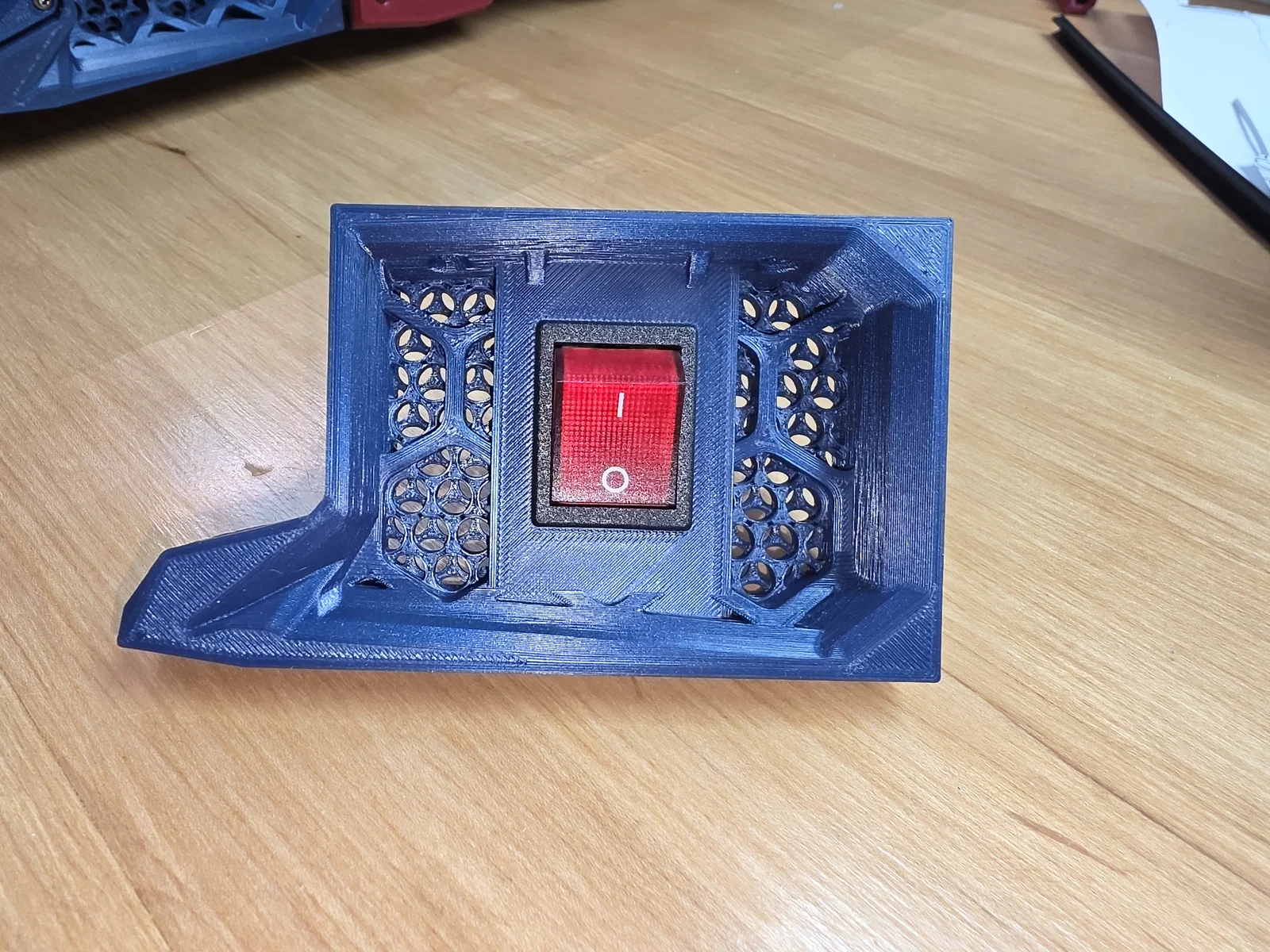 Bản thiết kế tùy chỉnh cho phần ốp hông (skirt) của máy in 3D Voron 2.4, cho phép lắp thêm công tắc nguồn thứ hai ở mặt trước. Thiết kế này giúp người dùng dễ dàng thao tác, hỗ trợ tắt nguồn các thiết bị chính nhưng vẫn duy trì hoạt động cho Pi.