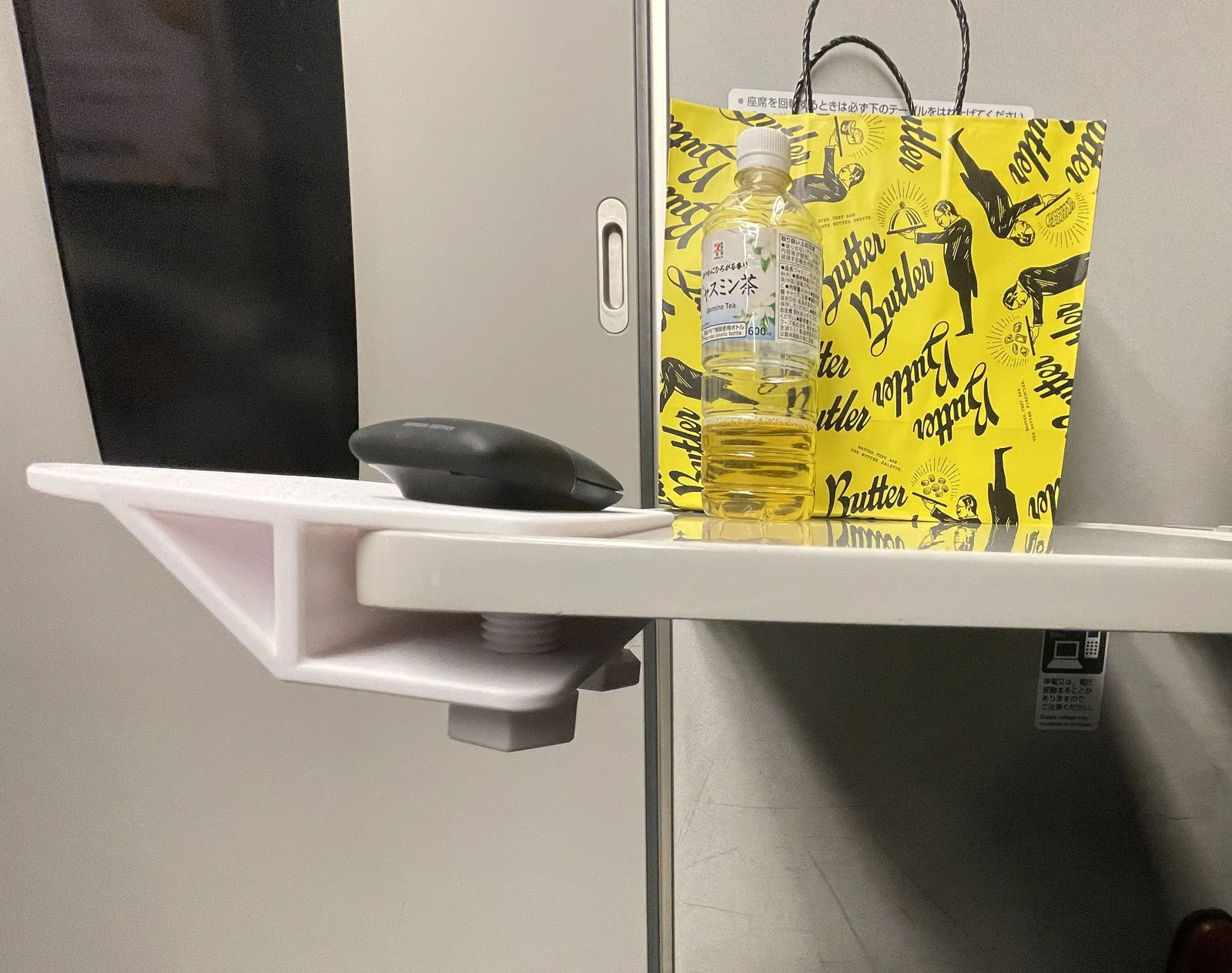 Bàn mở rộng để tì tay và di chuột trên tàu Shinkansen