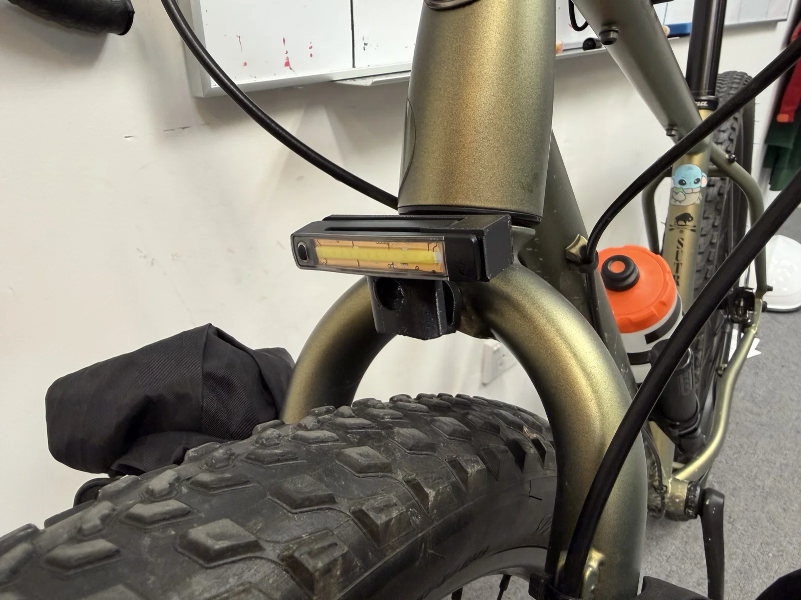 Chắc chắn hơn hẳn mấy cái ngàm vòng cao su đi kèm đèn KNOG Plus. Mình tự thiết kế và làm mấy cái này cho chiếc xe touring của mình - một em Kona Sutra LTD, nhưng bạn có thể gắn vào bất cứ phuộc nào có lỗ ở cầu phuộc (dùng cho phản quang hoặc móc treo) bằng ốc vít M5 và đai ốc. Ngàm sau kẹp vào thanh ray yên xe, giúp bảo vệ đèn khỏi va đập và thời tiết. Mình đã chừa sẵn không gian để gắn nam châm Neodymium trụ 6mm x 6mm, loại này rất dễ tìm mua. Nhớ kiểm tra cực trước khi dán nam châm vào nhé! Mình thiết kế ngàm trước để phù hợp với góc ống đầu (head tube angle) là 69.5°.