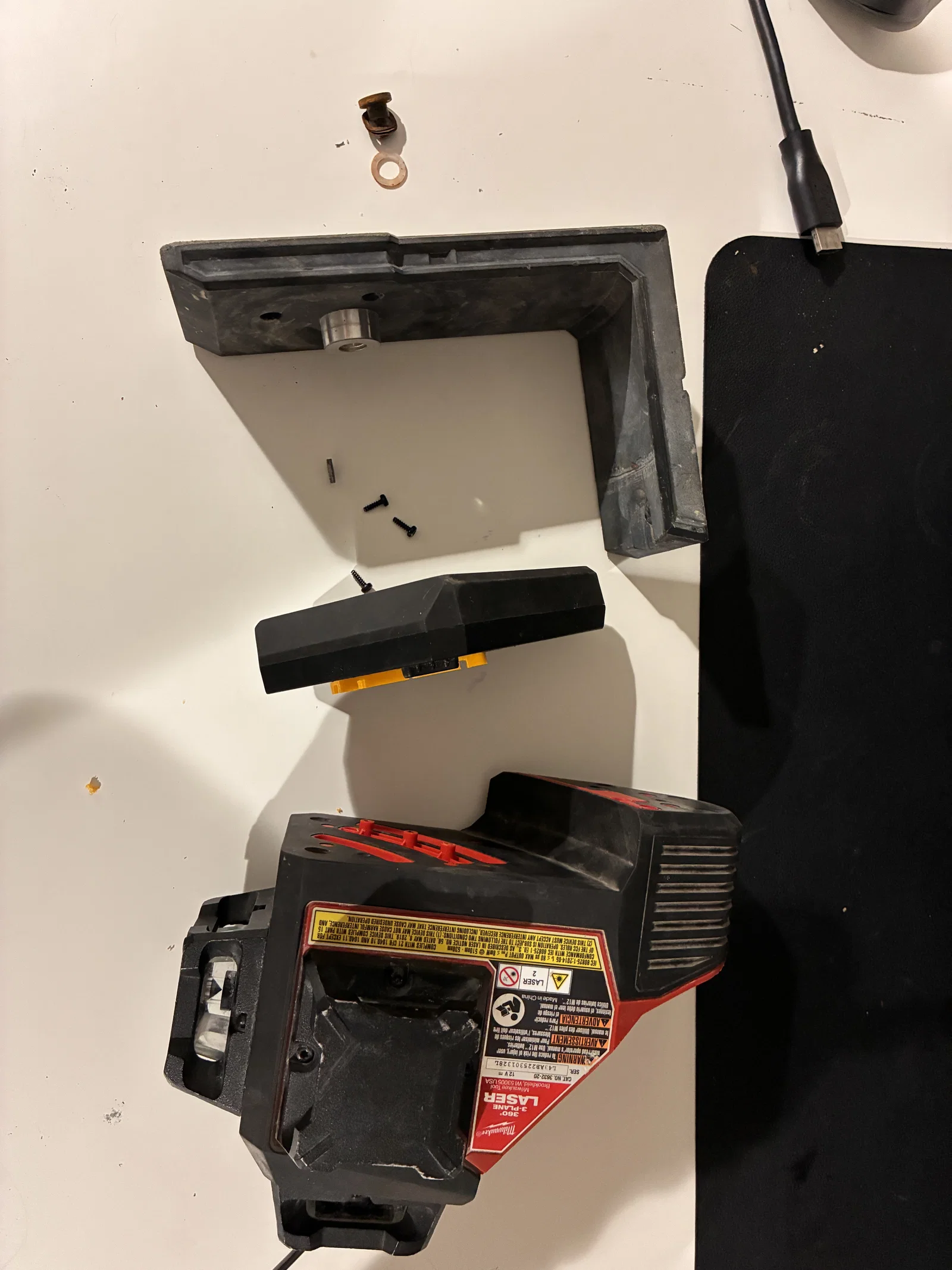 Bánh răng điều chỉnh tinh dùng cho máy laser Milwaukee. Anh em tháo ốc nhỏ (dùng lục giác như máy in 3D) để lắp ráp, hoặc có thể tận dụng các lỗ có sẵn trên chân đế để thao tác lắp đặt dễ dàng hơn.