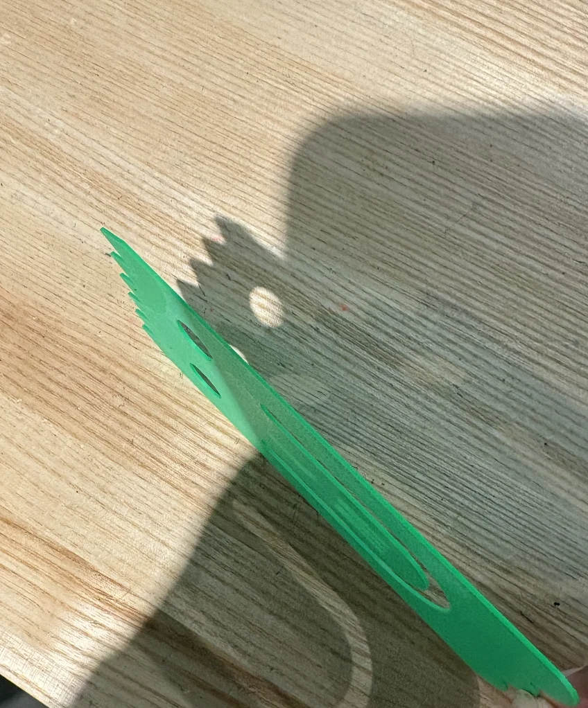 - Ngày thứ 2, mình nhận ra số đo các tam giác bị sai. Trên giấy là 8.94mm nhưng chiều cao thực tế từ đáy tam giác đến đỉnh khung là 8.36mm. Mình đo lại bằng thước kẹp và ra con số 9.75mm. Sau khi chỉnh lại số đo, các tam giác đã cân đối.