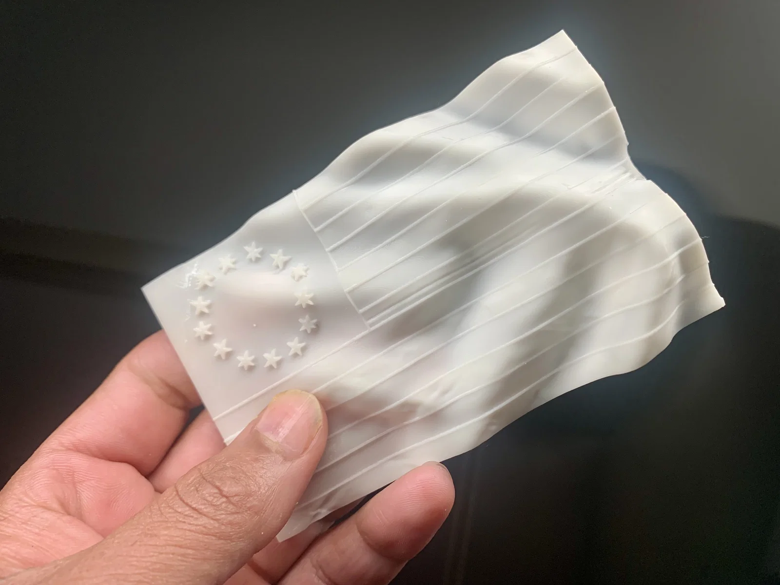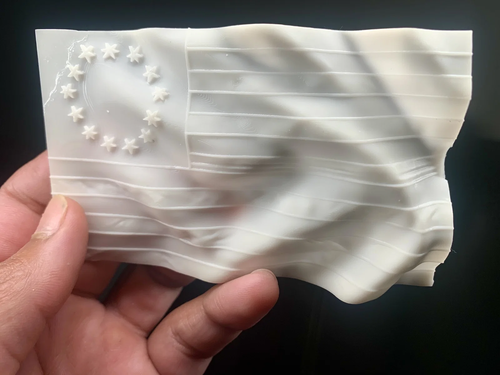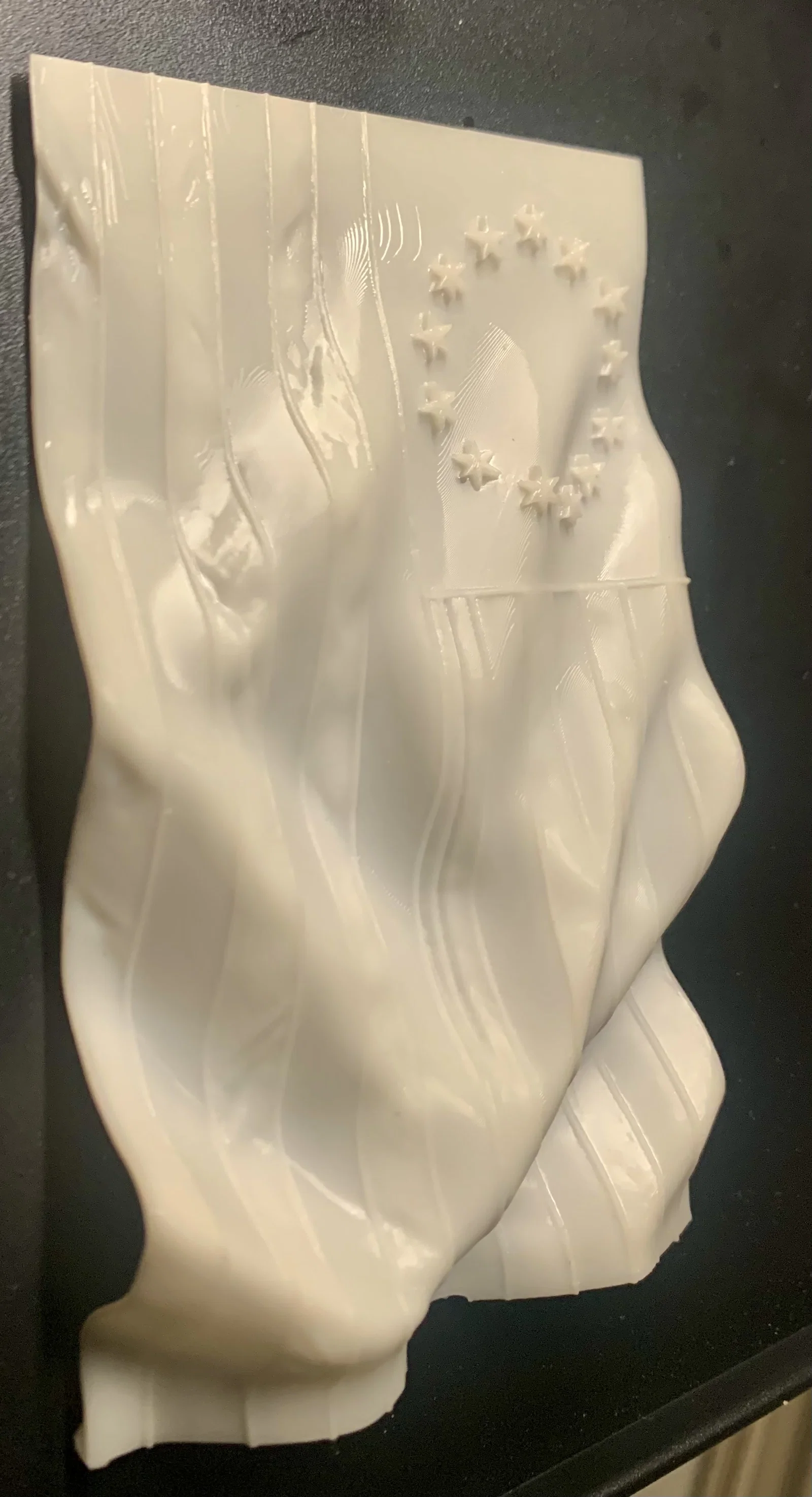 Đây là lá cờ 13 ngôi sao nổi tiếng của quân đội Liên minh Lục địa non trẻ dưới thời Tướng George Washington. Mô hình được thiết kế với hiệu ứng đang bay trong gió, nếu dùng thêm phụ kiện phù hợp thì treo tường trang trí sẽ rất đẹp. Khi in nên để đặc và dùng đủ support dù chúng hơi mảnh. Nếu bạn làm cho mô hình dày hơn một chút để trưng bày trên bàn làm việc thì sẽ còn tuyệt vời hơn nữa. Chúc các bạn in vui vẻ...